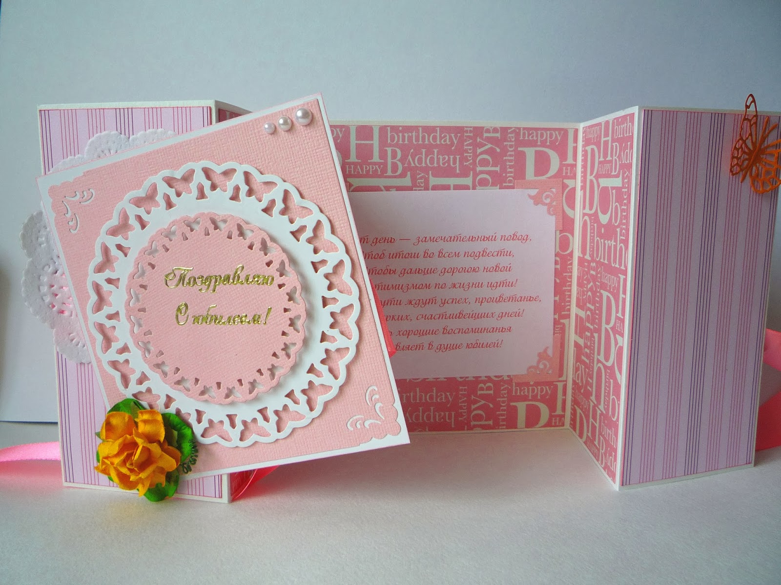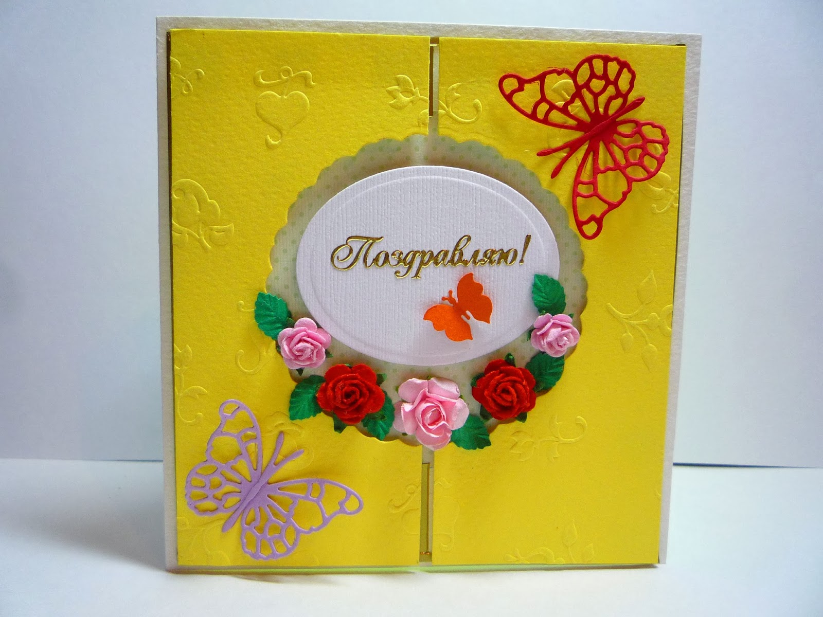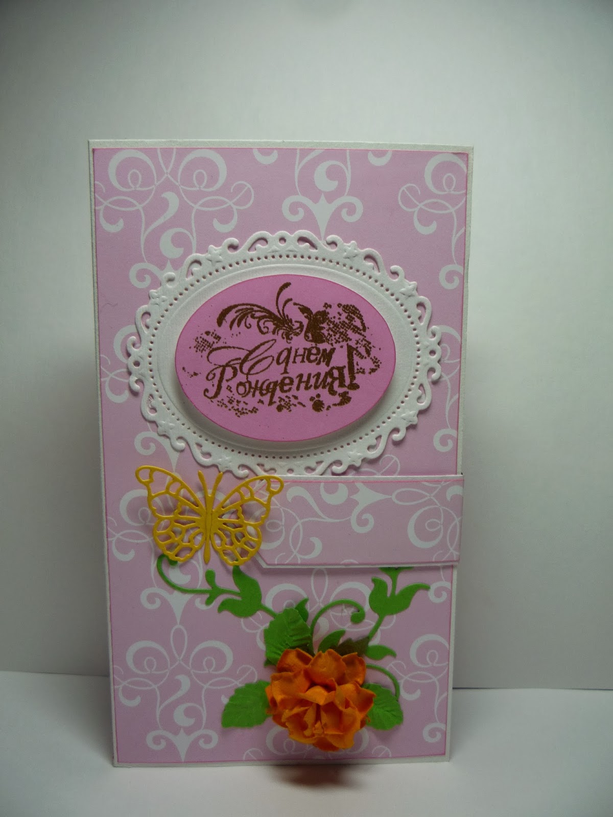 Получила я новые ножички и села с ними играться. Да и повод был, у знакомой день рождение. А такую форму открытки увидела в зарубежном блоге. Нравится мне у них бывать в гостя. У них часто можно найти уроки по которым хорошо учиться. Свои первые открытки я делала по их урокам. Да и сейчас постоянно учусь.