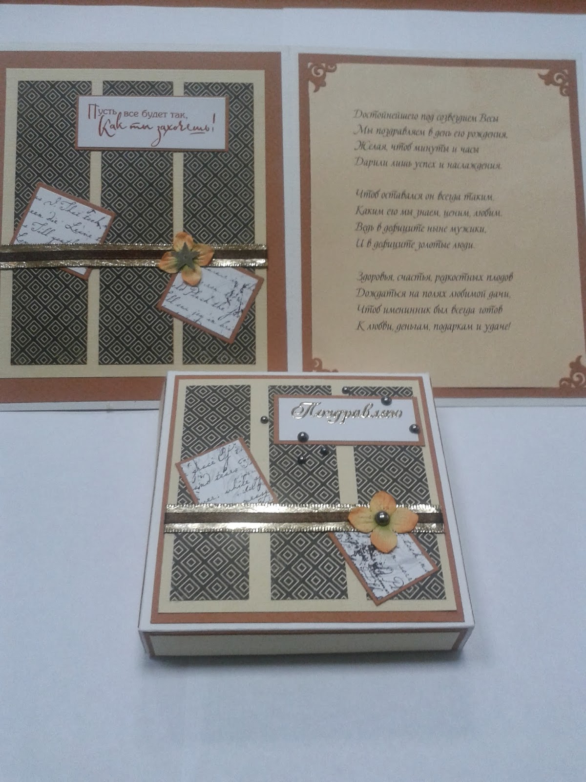 А к открытке сделала коробочку куда положила мыльце от Надюши. Опять просила ее сделать с мужской отдушкой.
