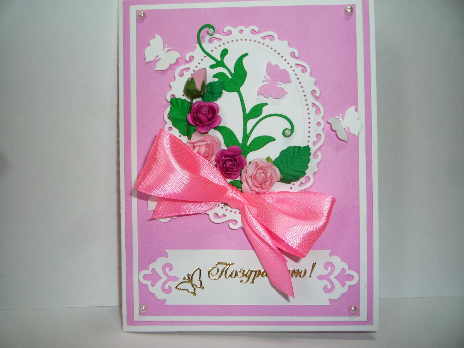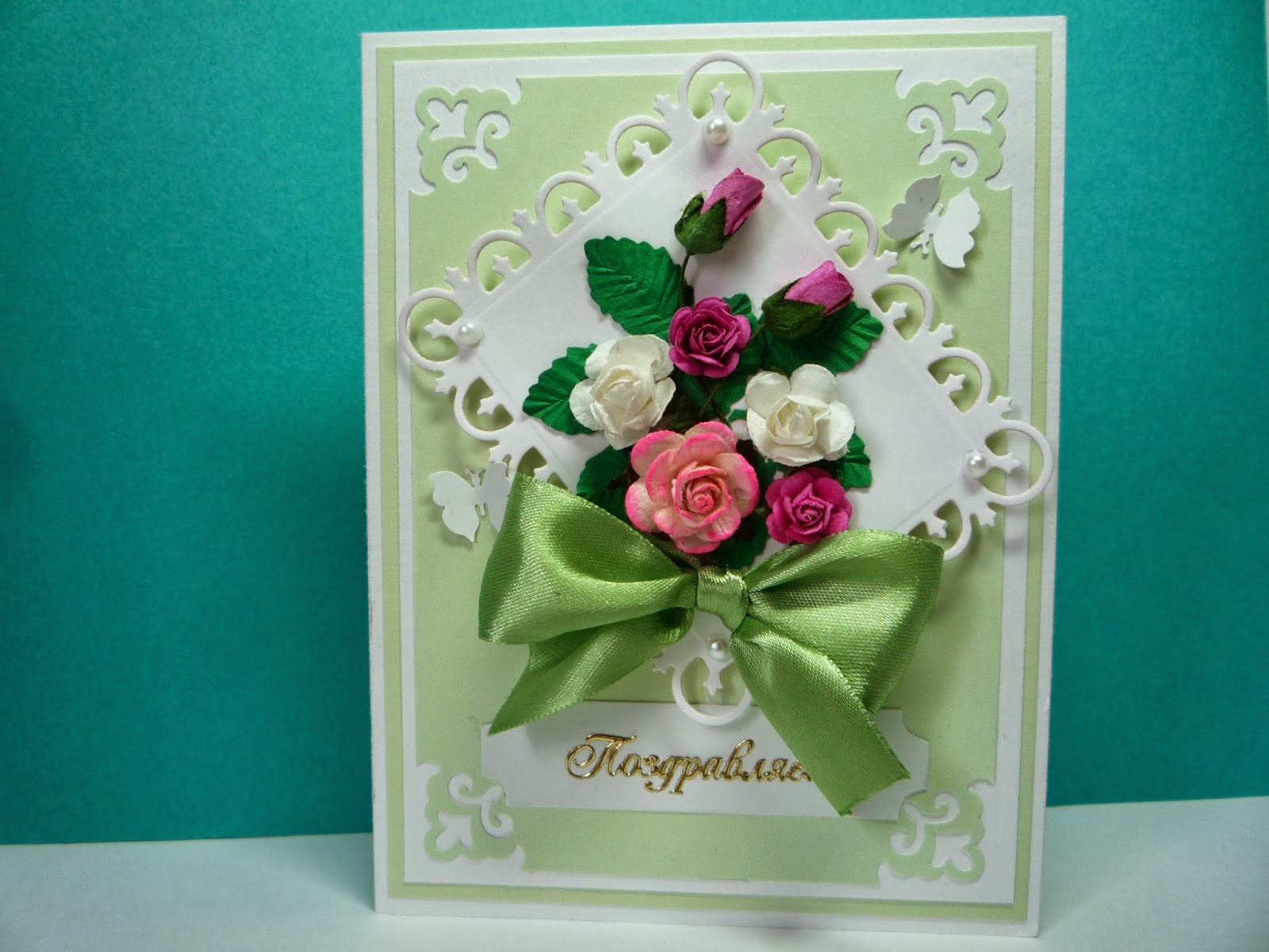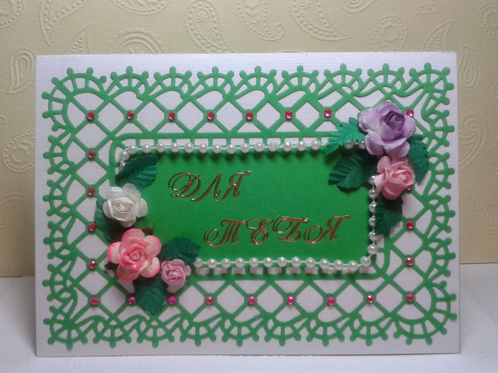 Сегодня покажу открытки быстрые в изготовлении. Нашла на просторах интернета и решила, что это самое то. Ничего не отстрачивается, (хотя если есть желание....) несколько вырубок, цветочки и все. Думаю их можно делать например на 8 марта, когда времени не хватает.