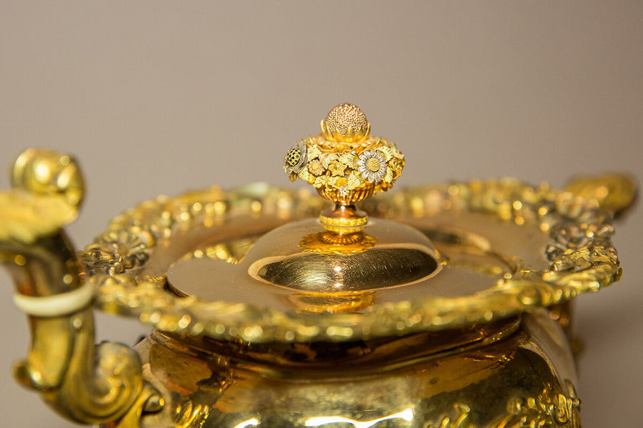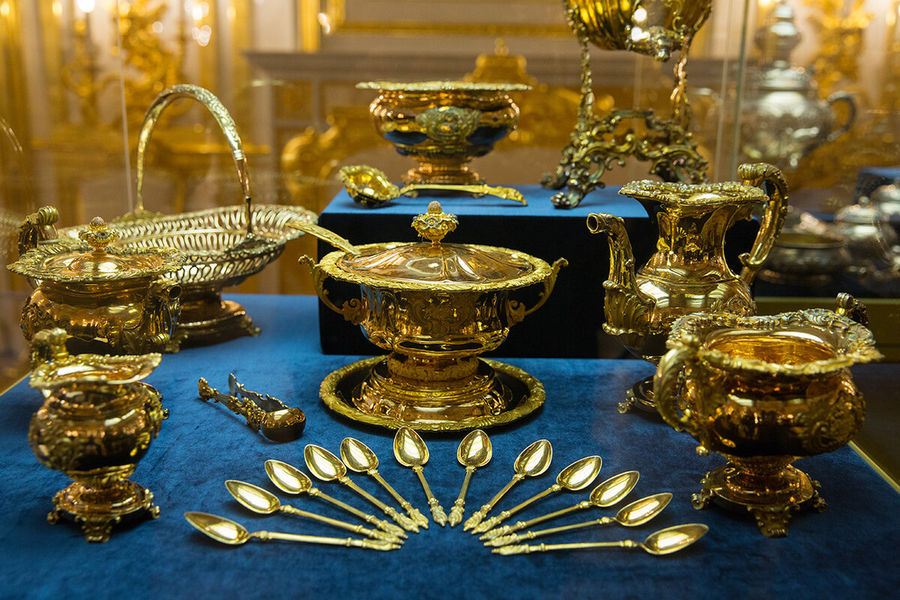 После революции многие дворянские семьи бежали за границу, прихватив собой в спешке лишь все самое необходимое. Многим удалось различными способами вывезти фамильные драгоценности, кому-то повезло чуть меньше. Богатейшему роду Нарышкиных – не повезло. В России осталась их богатейшая коллекция сервизов и столовых приборов из драгоценных металлов работы лучших русских и французских мастеров.