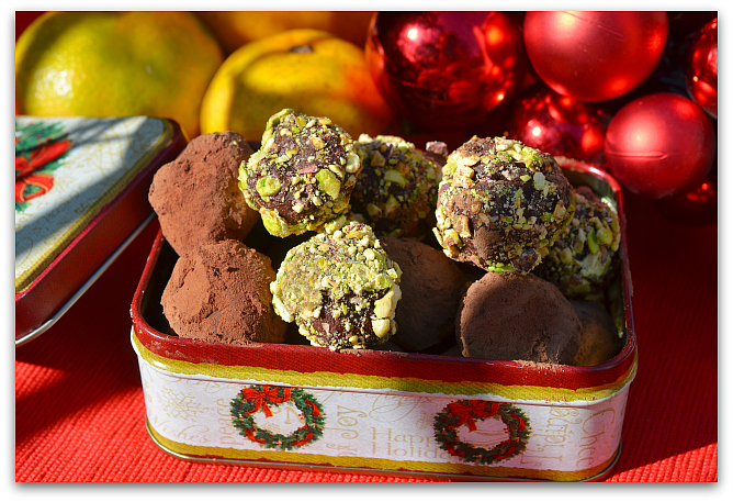 Шоколадный трюфель был впервые создан N.Petruccelli в Шамбери — главный город французского департамента Савойи в южных Альпах, Франция, в декабре 1895 года. Эти конфеты достигли широкой популярности после того как Antoine Dufour создал магазин шоколада Prestat в Лондоне в 1902 году, который до сих пор продает «Наполеон III» по оригинальному рецепту. Ну а рецепт этих трюфелей я взяла из книги Le Cordon bleu.