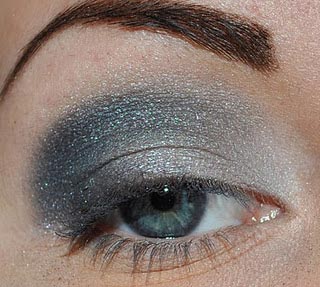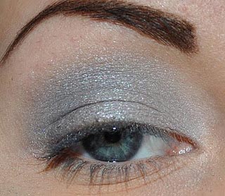 Нанесите серые тени из палетки на все веко.