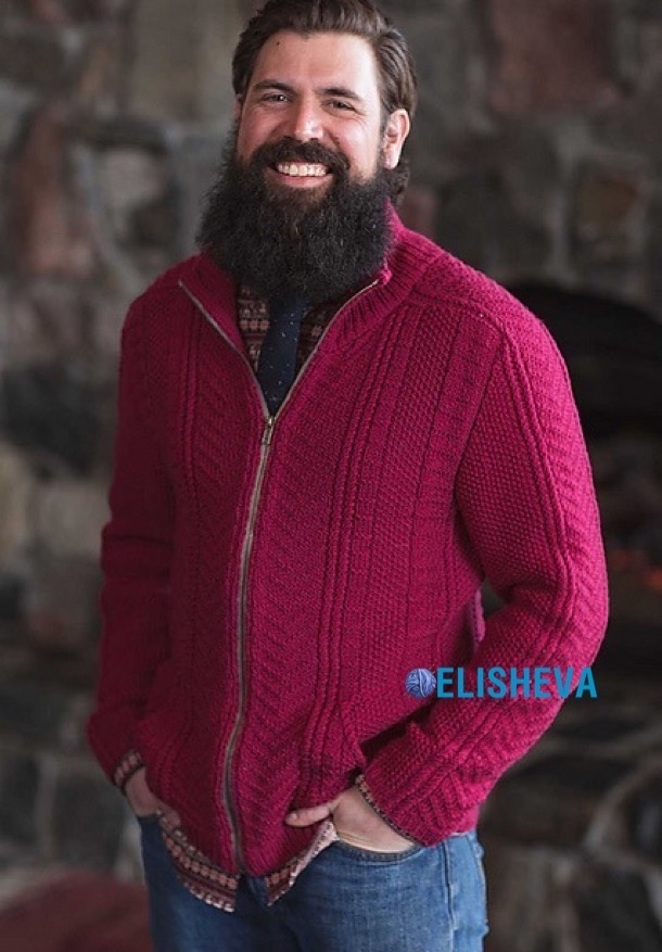 Множество интересных деталей сделает этот мужской кардиган особенным: витые жгуты, обрамляющие плечи, и косые карманы, застежка-молния. А мягкая пряжа мериноса подчеркнет красоту текстурного узора из лицевых и изнаночных петель. Наш традиционный ганзейский кардиган дизайна Эми Гюндерсон вяжется снизу вверх отдельными деталями и потом сшивается. Модель рыбацкого кардигана для мужчин взята из последней коллекции 2017-2018. Ганзейское вязание сейчас на пике моды и популярности у вязальщиц. Свитера в данном стиле в основном создает Джаред Флад. Бесплатное описание такой модели большая удача для многих рукодельниц! И мы рады, что приложили к этому руку.
