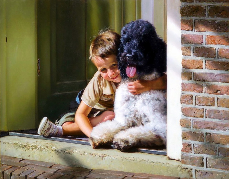 Если грусть сердечко гложет, Счастье мне моё поможет - Прислонится тёплым лбом, Слижет слёзы языком. У меня, глядите, люди - Самый лучший в мире пудель! И спрошу я - "Вы, простите, Стать счастливым не хотите ль?" |