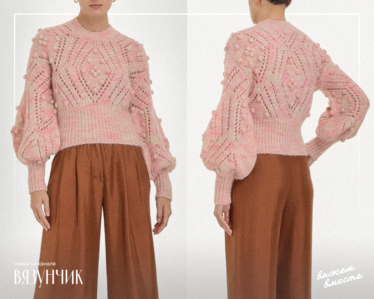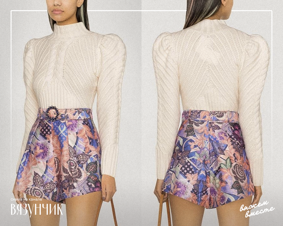 Еще одна удивительной красоты вязаная модель — это свитер из мелких жгутов.