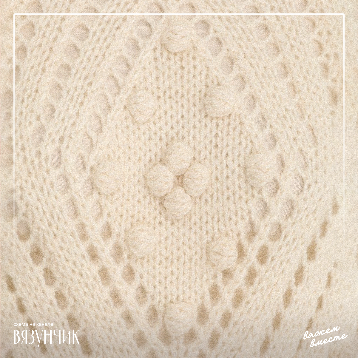 Обратите внимание на шишечки. Параметры узора не позволяют разместить их симметрично, поэтому они не вяжутся вместе с полотном, а, скорее всего, надвязаны после.