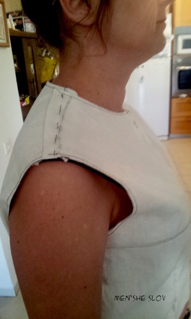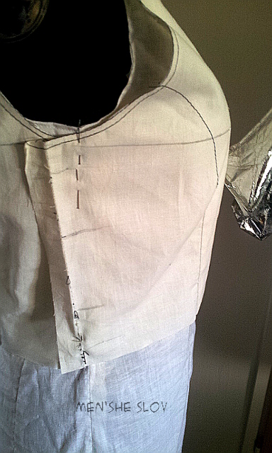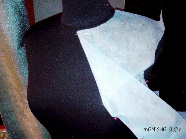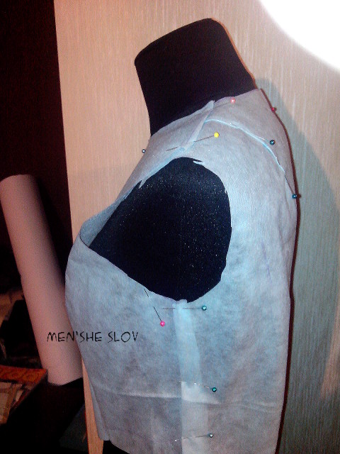 Вот такая вот конструкция изваялась. Мне кажется, что вполне похоже на наш случай. На бюсте торчит, на спине фалдит, а плечи я наколола по фигуре манекена.