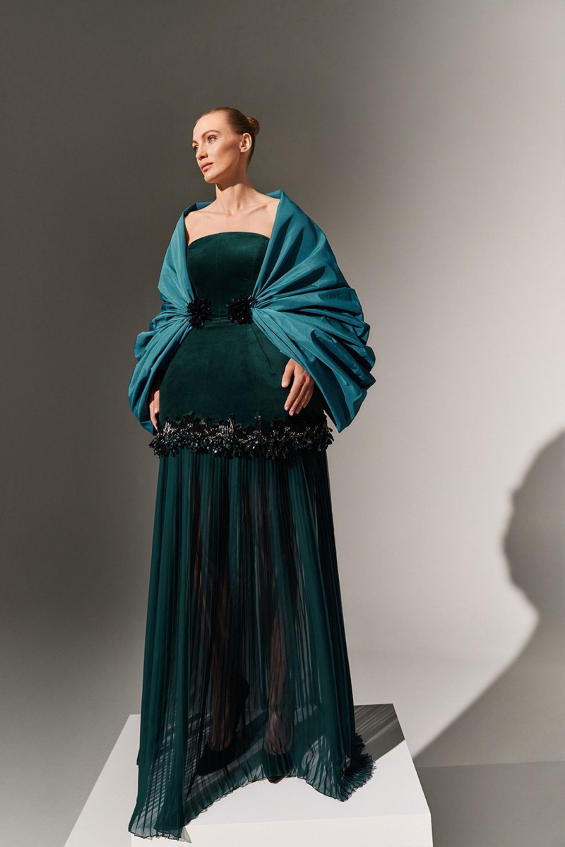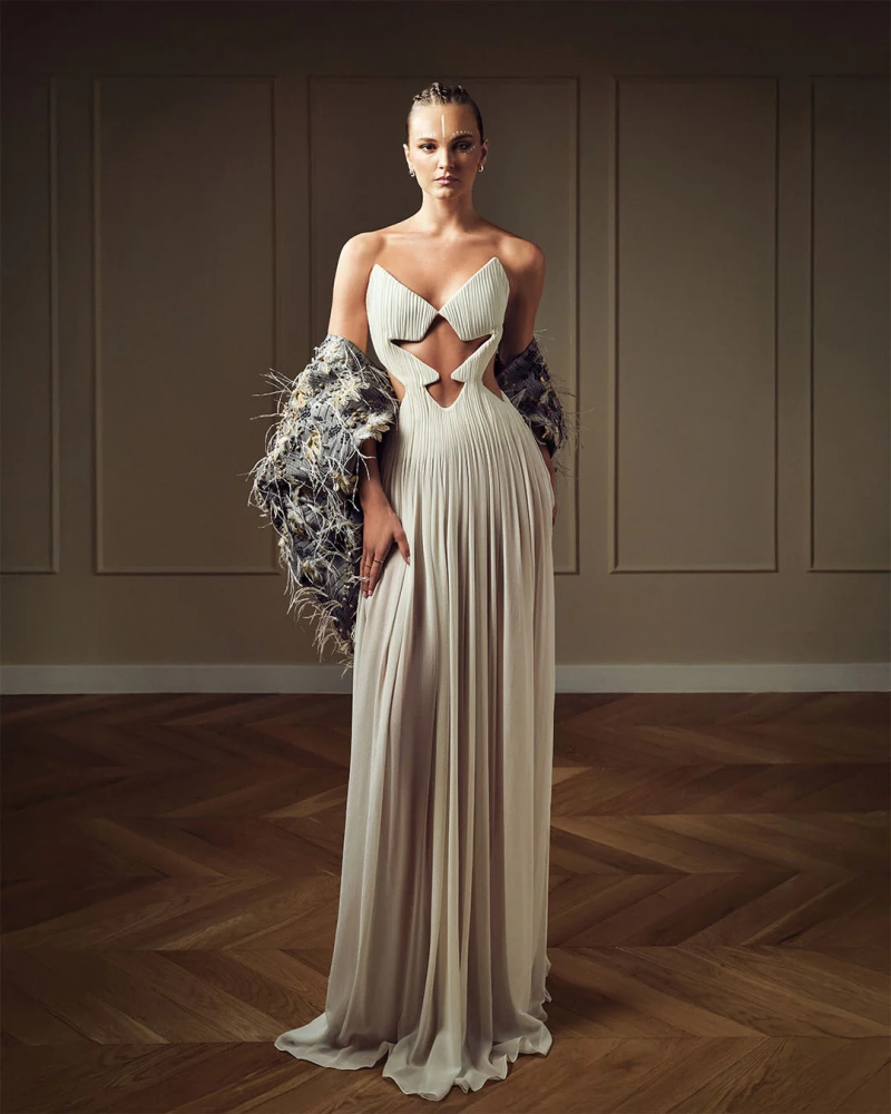 Йоханна Ортис представила свою коллекцию Alma в Мадриде, однако место проведения было больше чем просто фоном. Колумбийский дизайнер оставалась верна своим тропическим корням, но при этом деликатно отдавала дань Испании. «Будучи ребенком, я была очарована trajes de luces. Дело не в корриде, а в театральности момента. Я не хотела делать что-то буквальное, а скорее включить небольшие намеки: переосмысливать такой вид вышивки, акцентировать плечи, исследовать воланы — которые очень наши, — адаптируя их под этот образ», — объяснила она.