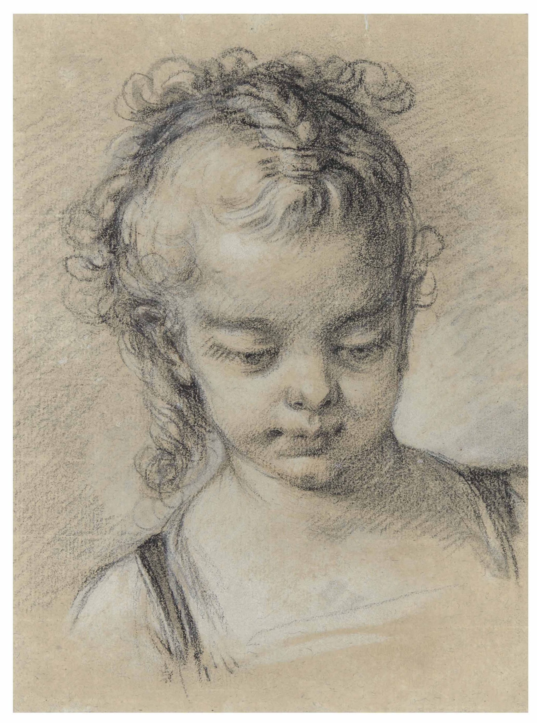 THE HEAD OF A YOUNG GIRL WITH PEARLS IN HER HAIR.