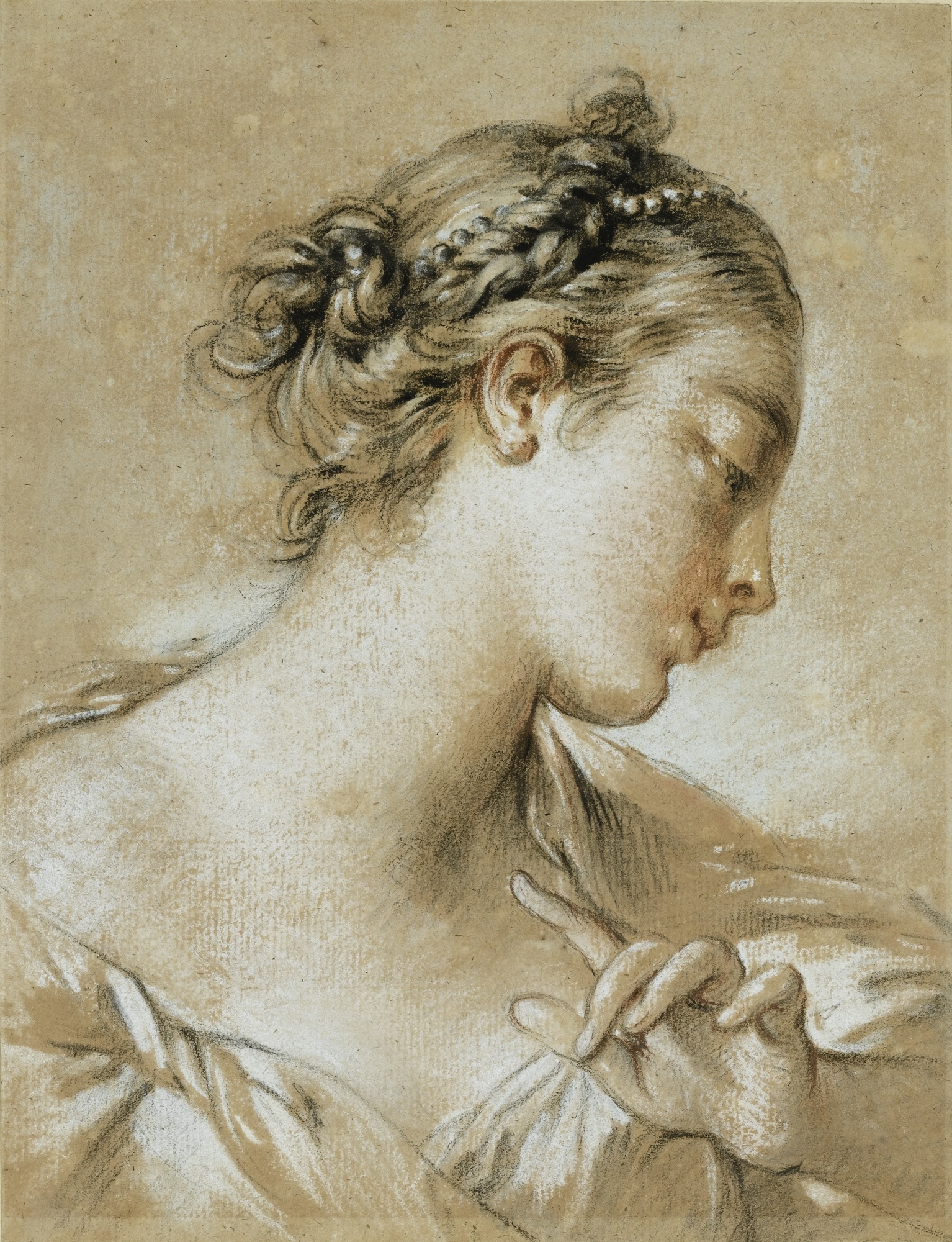 Прекрасный рисовальщик, Буше работал не только в технике пастели, но и гуаши; любил сочетать черный и белый мел с сангиной, то есть исполнял рисунок «в три карандаша» по тонированной коричневым тоном бумаге, что создавало изысканные цветовые эффекты. Для шпалерной мануфактуры он создал более 40 эскизов для шести серий шпалер.