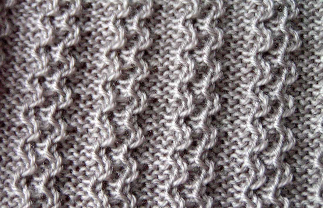 Текст автора: "Умная мысля приходит опосля! Вместо того, чтоб до дрожи в руках перекрещивать деккером петли в косичках при вязании платья - сарафана, нужно было просто подумать мозгом и применить имитирующий эти жгутики узор. И я на него таки наткнулась, когда уже все связала. Если изменить схему расположения игл на передней игольнице, а на задней- выполнять чулочную вязку, можно получить эффект жгутиков. Надо только последовательно чередовать сдвиг игольницы сразу на 2 шага - с 5 на 7 позицию и обратно. Узор вяжется очень быстро и выглядит эффектно, правда, не так стильно, как косички.