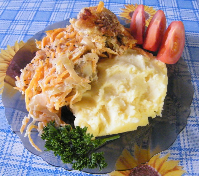 Оригинально! Салат с добавлением кетчупа, а также с грибами и ананасом. Но очень вкусно!