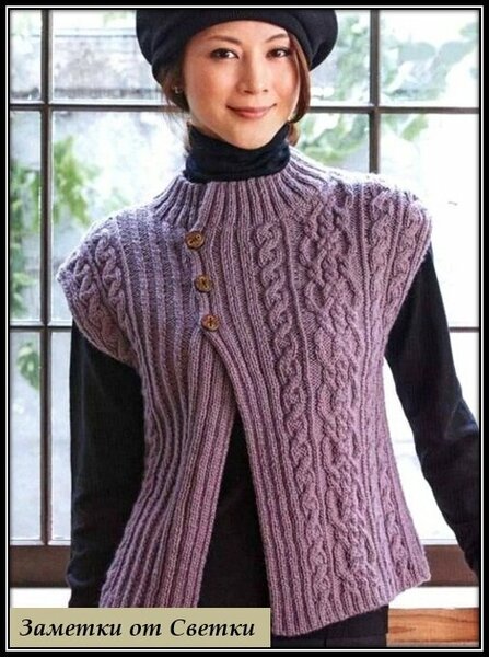 Вам потребуется: 700 г пряжи «LANAGOLD BATIK» {240 м/100г) (49% шерсть, 51% акрил), круговые спицы №5; 3 пуговицы.
