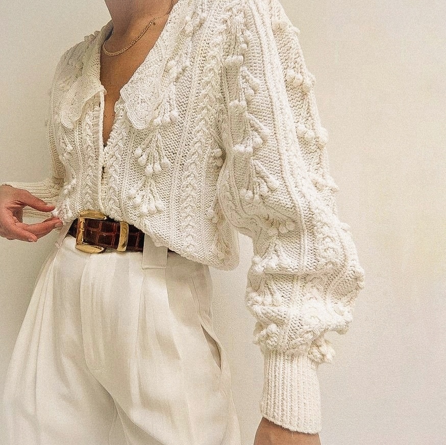 Этот кардиган — это воплощение ретро-шика, который и в наши дни прекрасно дополнит любой гардероб.