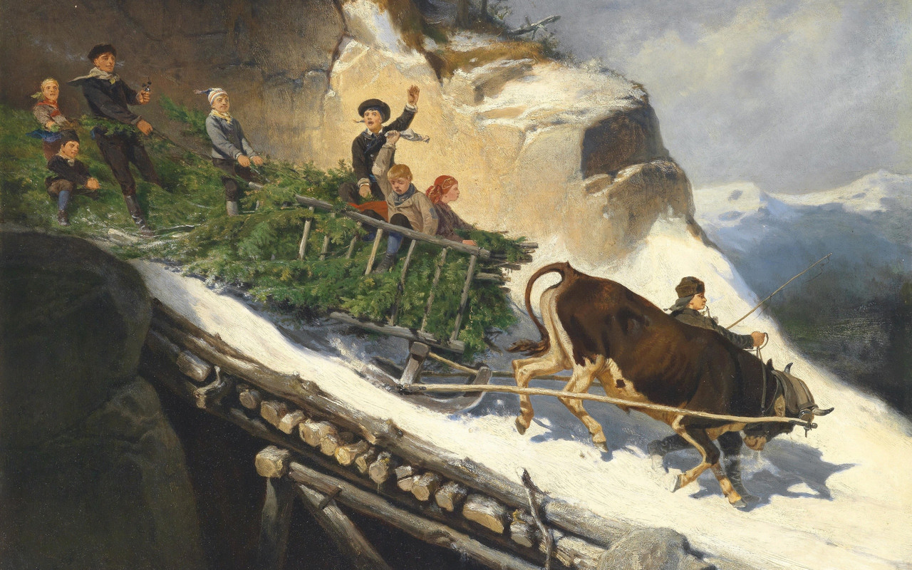 Йозеф Антон Штрасгшвандтнер «Фермерские сани с ёлкой в зальцбургских Альпах»