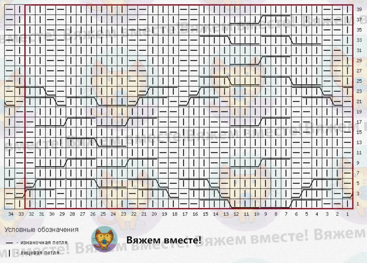 Узор довольно интересный. Хоть он и прост в исполнении, составить схему оказалось не так уже и легко даже по приближенной фотографии. Петли на фото не разглядеть.