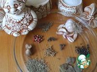 Прошу заметить, что не все перечисленные специи я применила при первом моем опыте с этим рецептом. Это уже со временем я добавляла специи, убавляла соль, сахар. Изначально на 2л воды было 200г соли и 70г сахара, а классический набор специй - ЛАВРОВЫЙ ЛИСТ, ПЕРЕЦ ЧЕРНЫЙ, ЧЕСНОК!!! Если Вы не уважаете по каким-либо причинам те или иные перечисленные специи, используйте классику или любимые Вами!