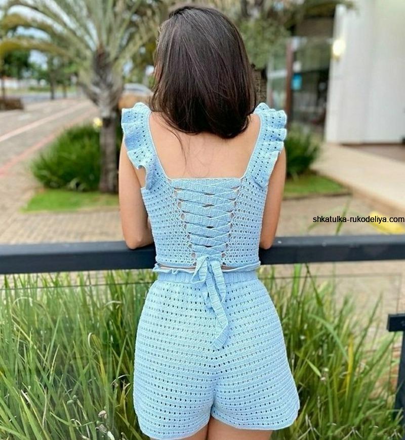 Застёжка на спинке из бусин, что добавляет шарма и украшает топ.