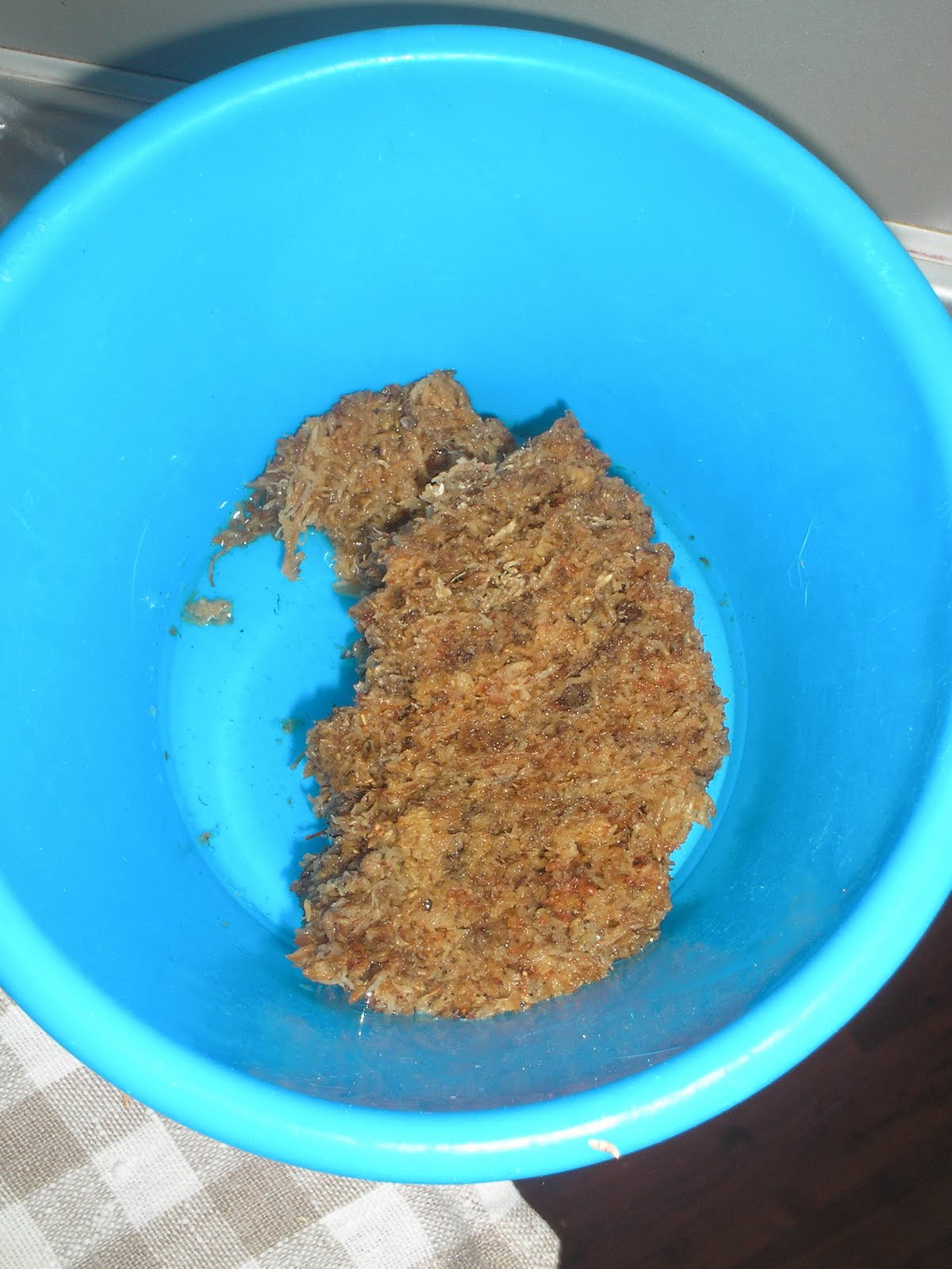 3. Замачиваем мох в воде. С непривычки мха отломила, казалось, что мало, оказалось, что он очень сильно разбухает в воде.