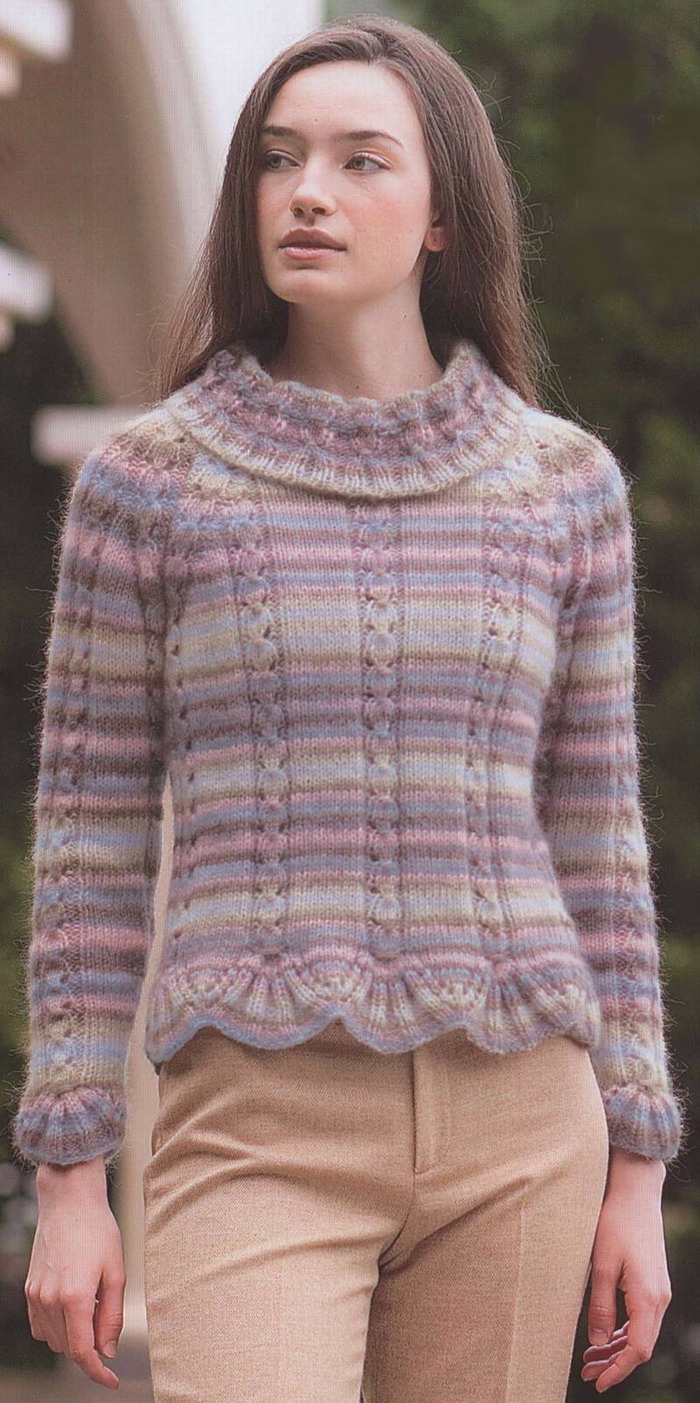 Очень красивая кокетка настолько хороша, что остальную часть вещи можно вязать хоть платочной вязкой - и всё равно получится невероятно эффектно.