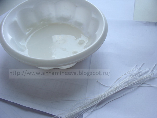 Пат - это смесь из клея ПВА и крахмала. Я замешивала его "на глаз", чтобы смесь была по-гуще. Она получается такой эластичной, что ли. Для работы использую одноразовую мисочку.