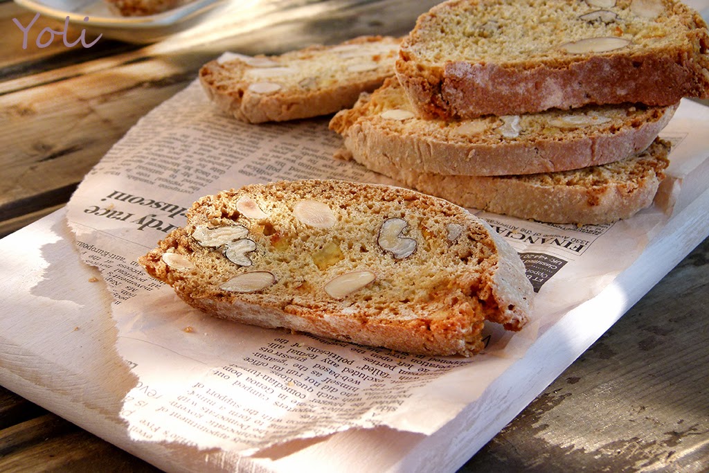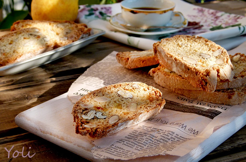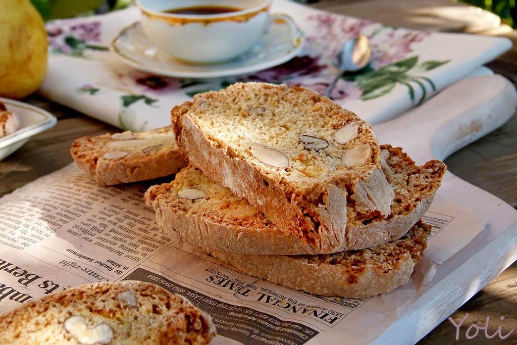 Произходът на кантучините е от Прато - Тоскана. Традиционно се сервират с Vin Santo - Свято вино. Това е едно много интересно вино, което се приготвя от полу изсушено грозде, станало едва ли не на стафиди. Е, днес ги хапваме на закуска с кафе или ги приготвяме като сме на по-дълъг път. Когато ги изпекох синът ми каза, че ще си счупи зъбите, но само след един ден не можеш да спреш да ги хрупаш. Това са едни от любимите бисквити в къщи, ще се радвам да ги опитате и вие. Да спомена само, че най-вече се приготвят по Коледа. Сега е една красива пролет, но катнучите са така вкусни, че не могат да чакат до зимата.