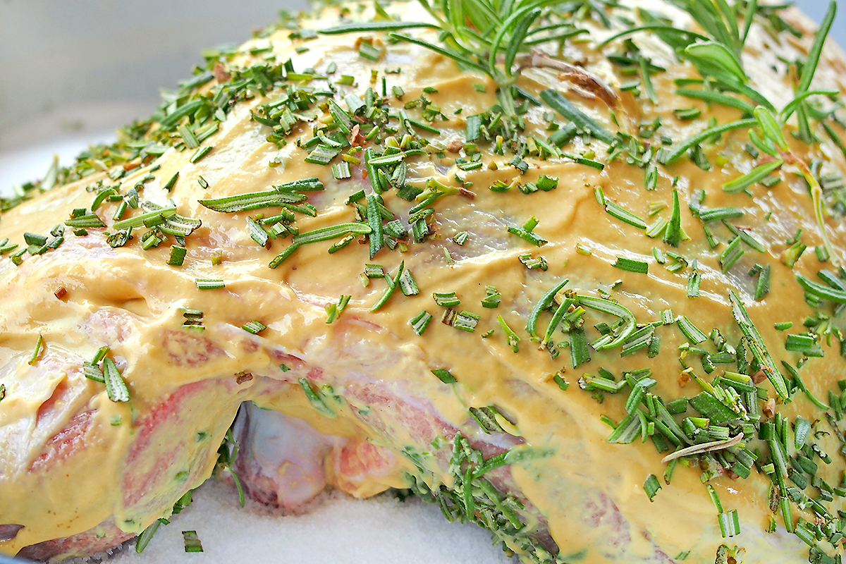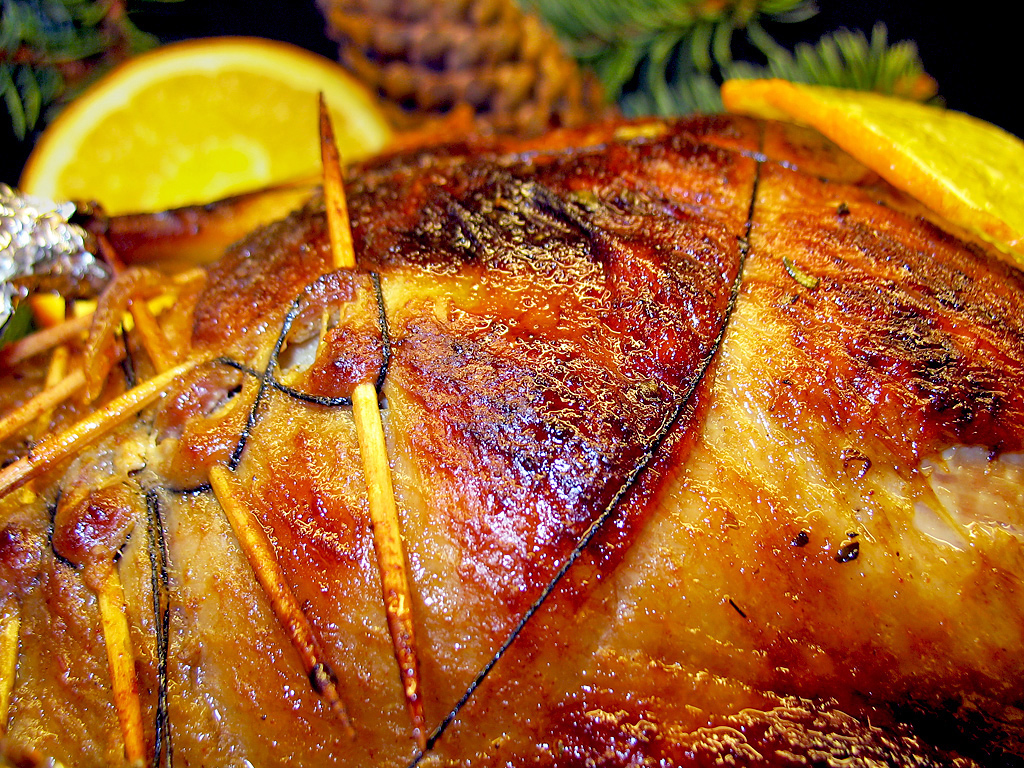 Печен пуешки бут на сол с ароматна коричка от розмарин