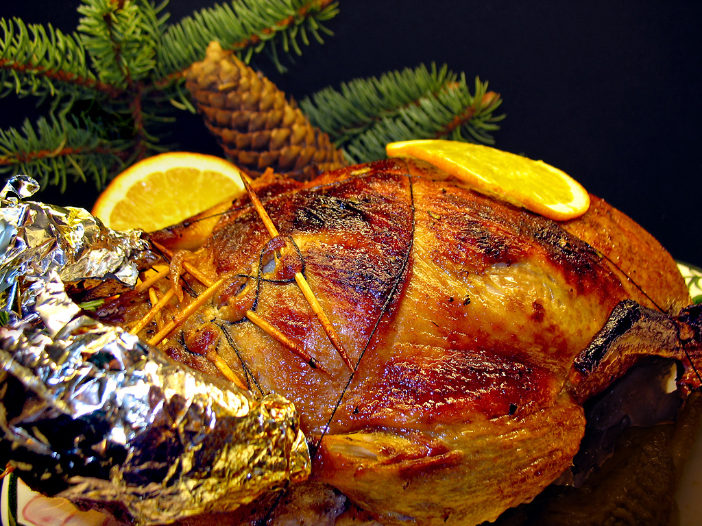 Байцвана патица с меден портокалов сос и пържени кнедли