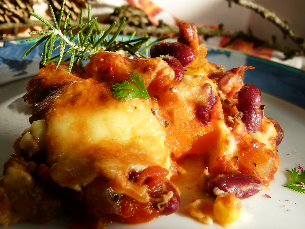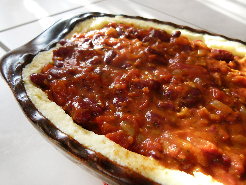 Запържваме половината лук с чесъна, разбъркваме с доматеното пюре и поръсваме за по-секси с достатъчно чили. Прибавяме доматите, заливаме за настроение с бира, поръсваме с бульона и като покъкри от удоволствие около половин час добавяме царавицата и боба. Сгъстяваме с нишестето и подправяме със сол, майорана и риган.