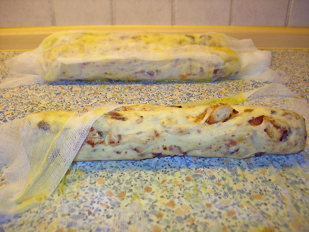 * Загрейте фурната на 180* и ги изпечете за около 30 - 35 минути. След като почти изстинат ги нарежете на филийки с остър нож. Подредете филийките в тавата и отново запечете за около 5 - 8 минути или докато станат златисти.