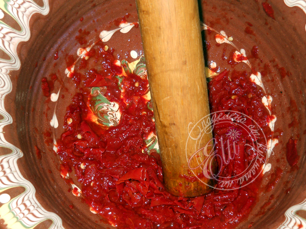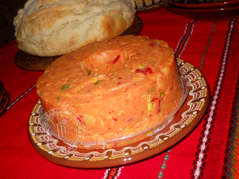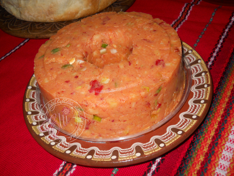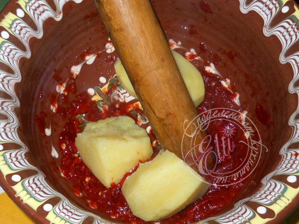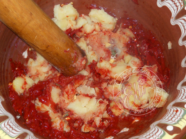 Пюре салата от картофи, сухи чушки и праз лук (търляни картофи)