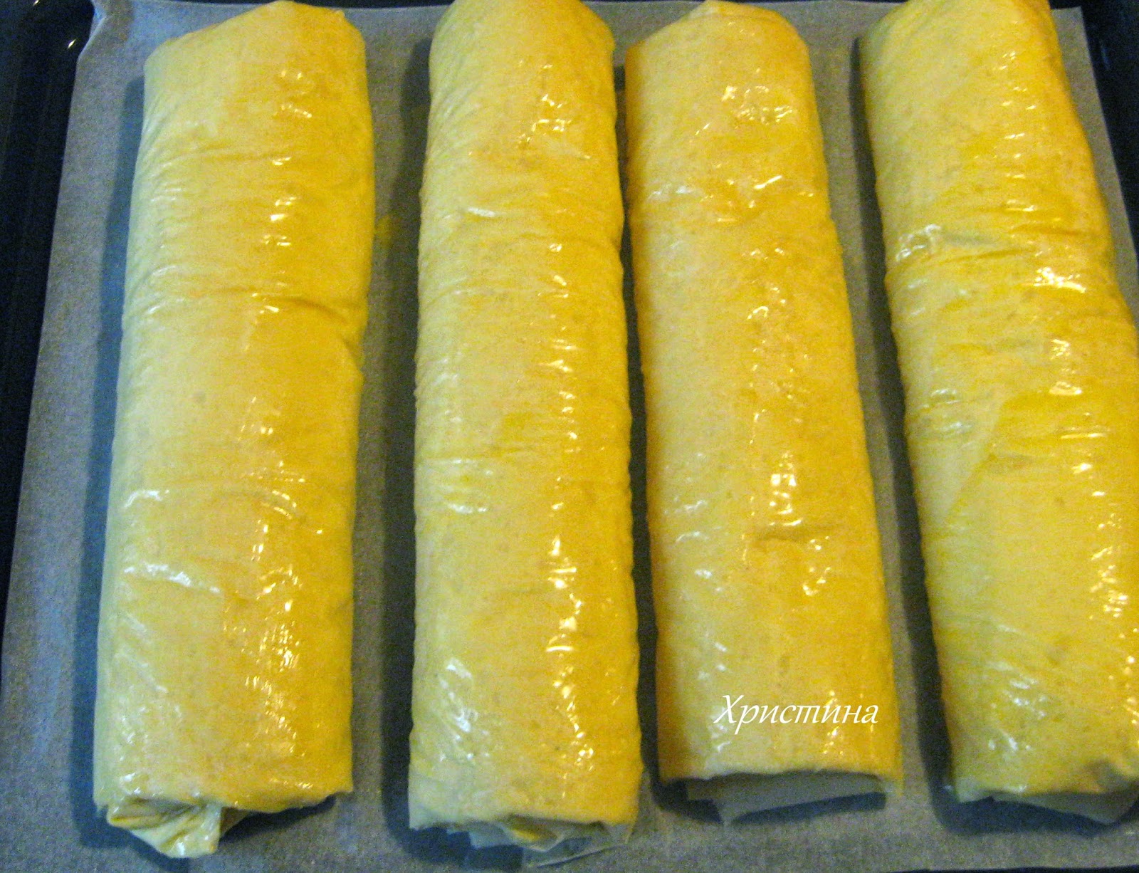 2 яйца + 1 яйце за намазване /много е за намазване, на мен ми остана голяма част от него, затова може да заделите малко от 2-те яйца, които ще вложите в тестото/