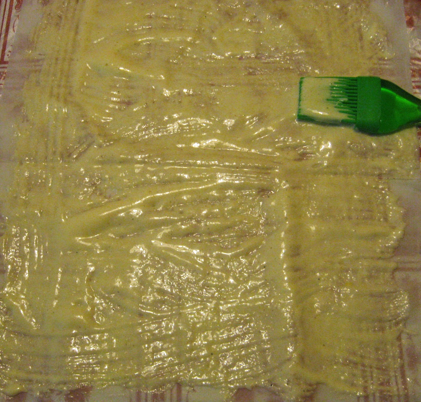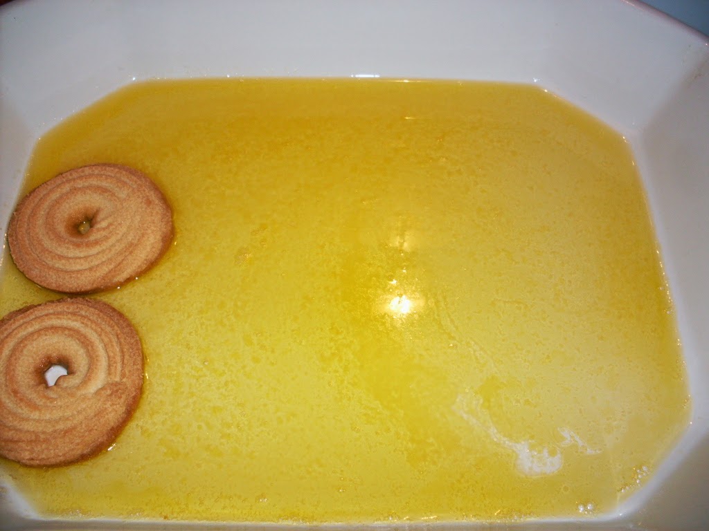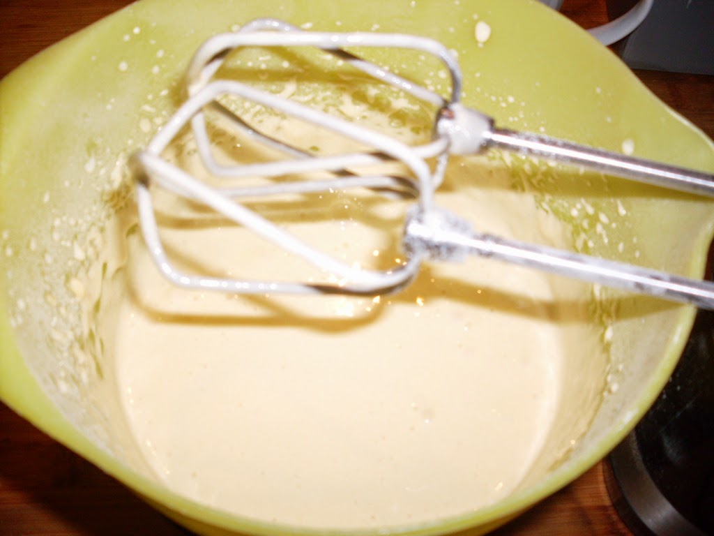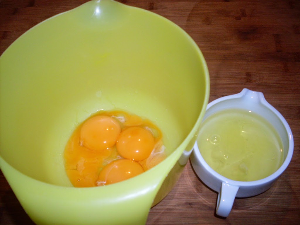 за бялата смес: 4 яйца 650 мл прясно мляко 200 г захар 1 ванилия |
