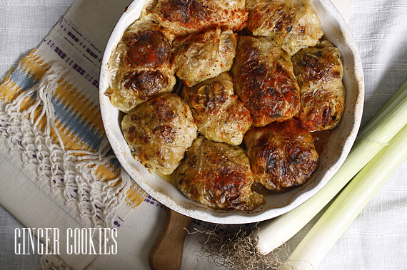Напълнете зелевите листа и ги навийте във формата на сърми.