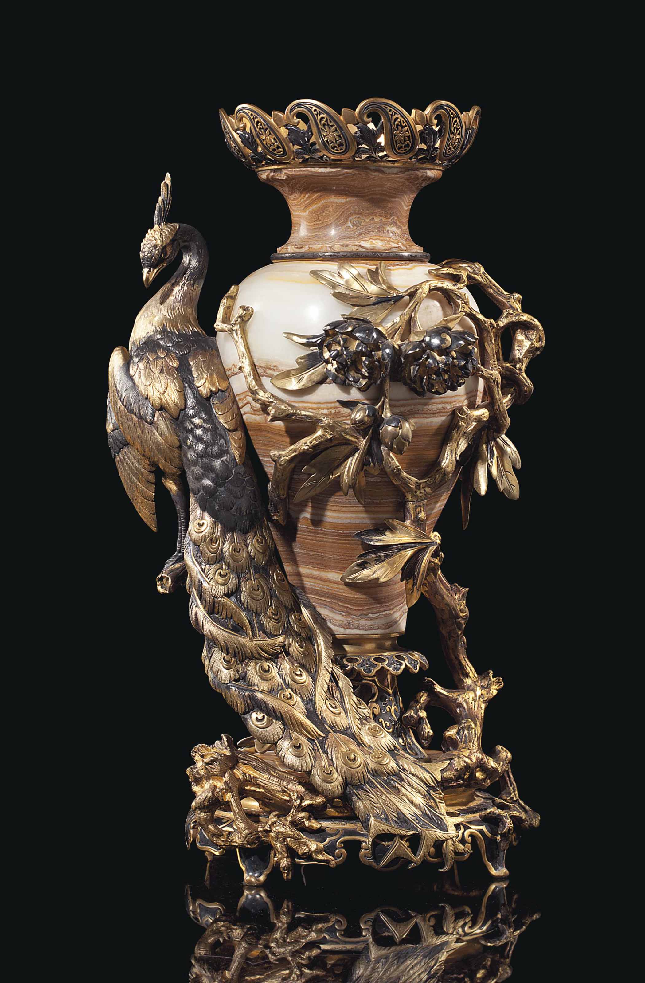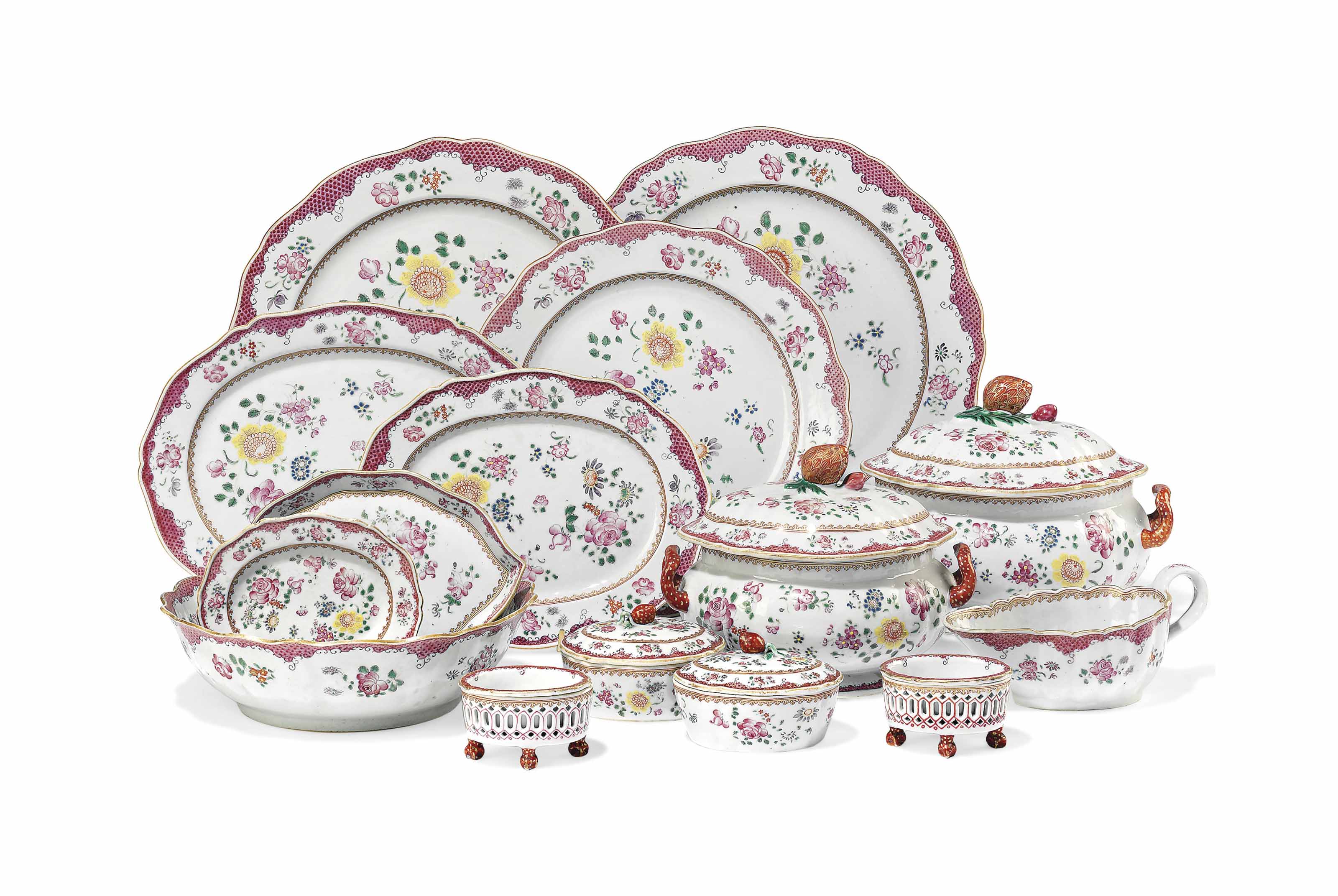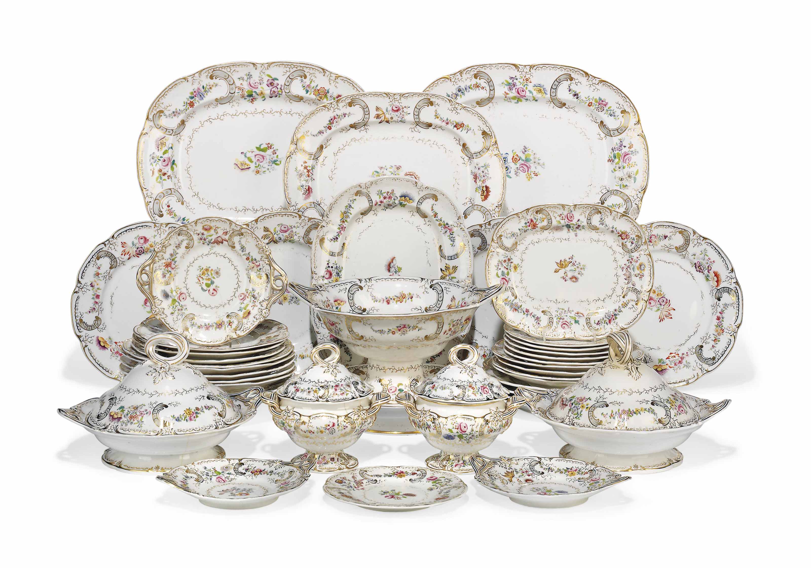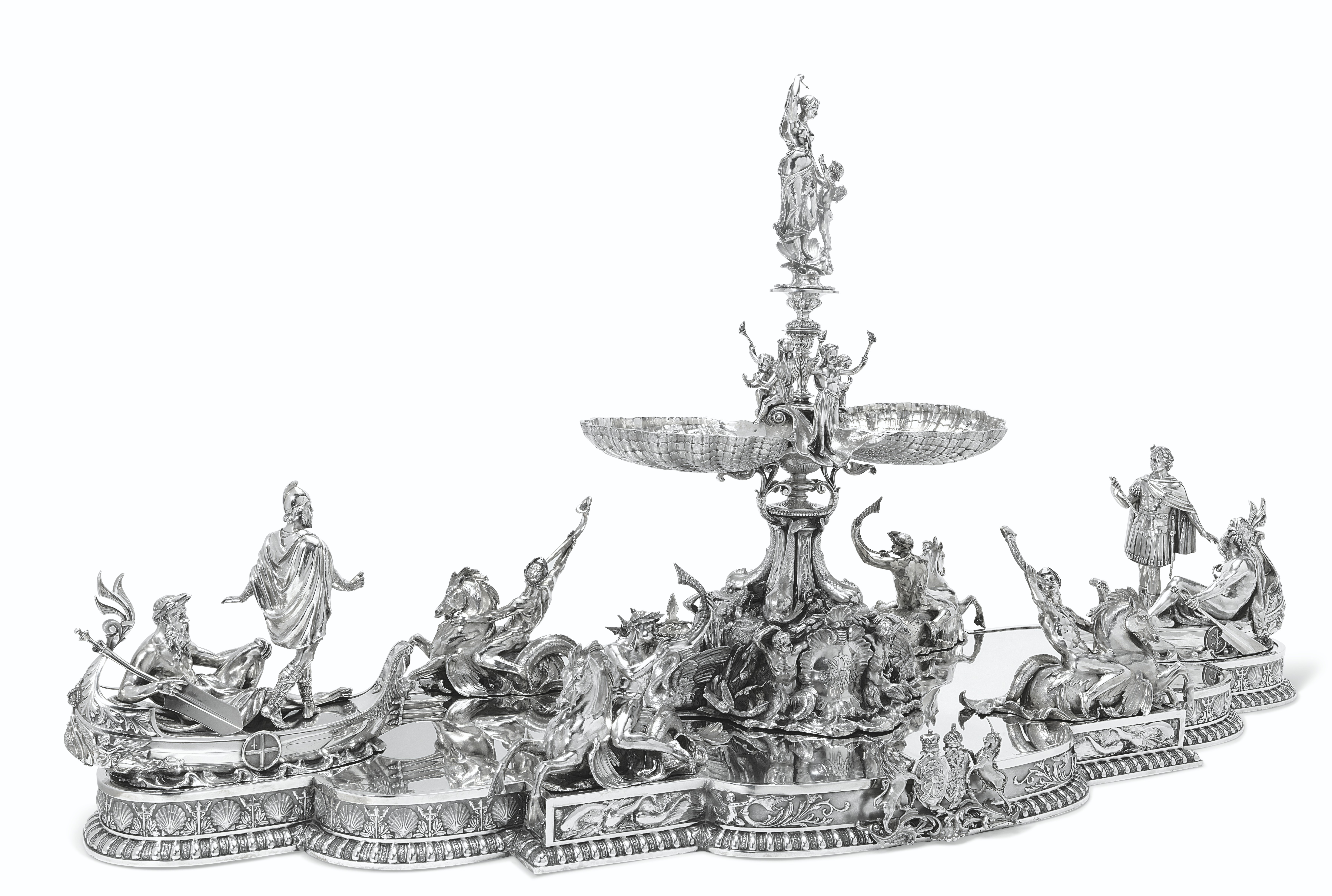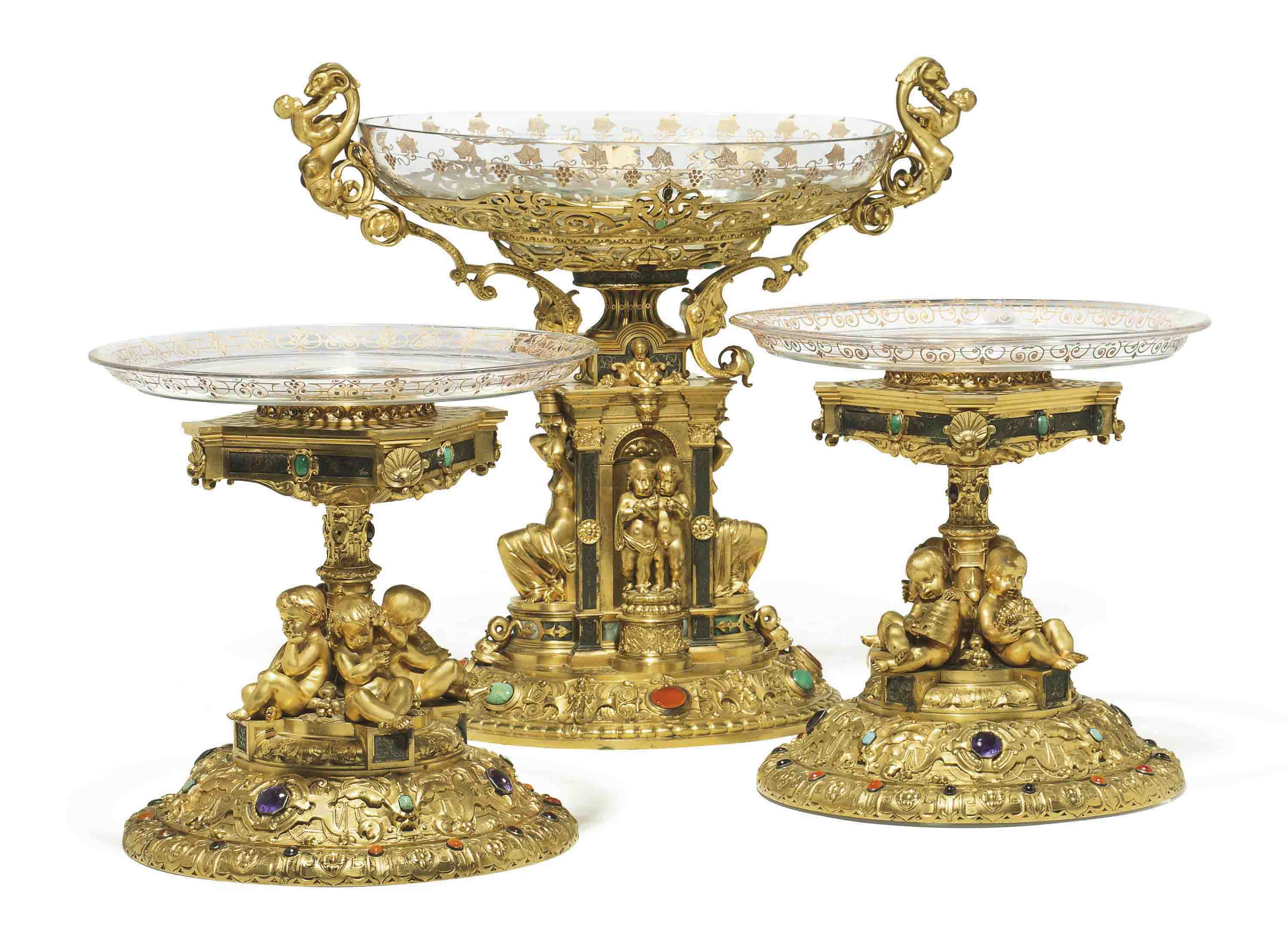 СТОЛОВЫЙ ГАРНИТУР ORMOLU ИЗ ФРАНЦУЗСКОГО СТЕКЛА, СЕРЕБРА И ТВЕРДОГО КАМНЯ ИЗ ТРЕХ ЧАСТЕЙ