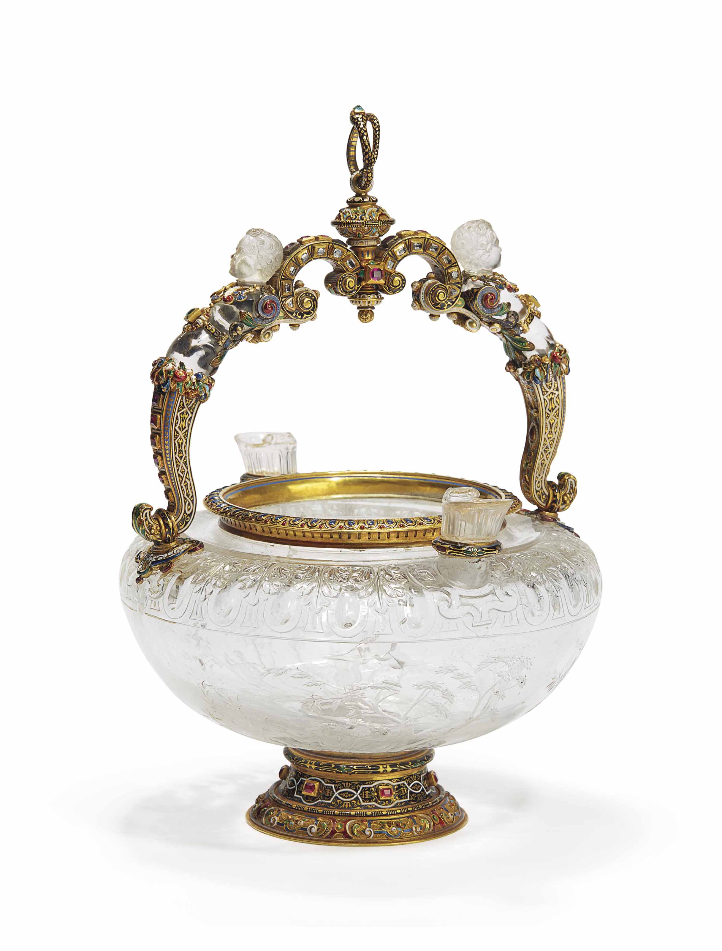 ЧАША Из ГОРНОГО ХРУСТАЛЯ В СТИЛЕ РЕНЕССАНСА, УКРАШЕННАЯ ДРАГОЦЕННЫМИ КАМНЯМИ И ЭМАЛЬЮ В ЗОЛОТОЙ ОПРАВЕ