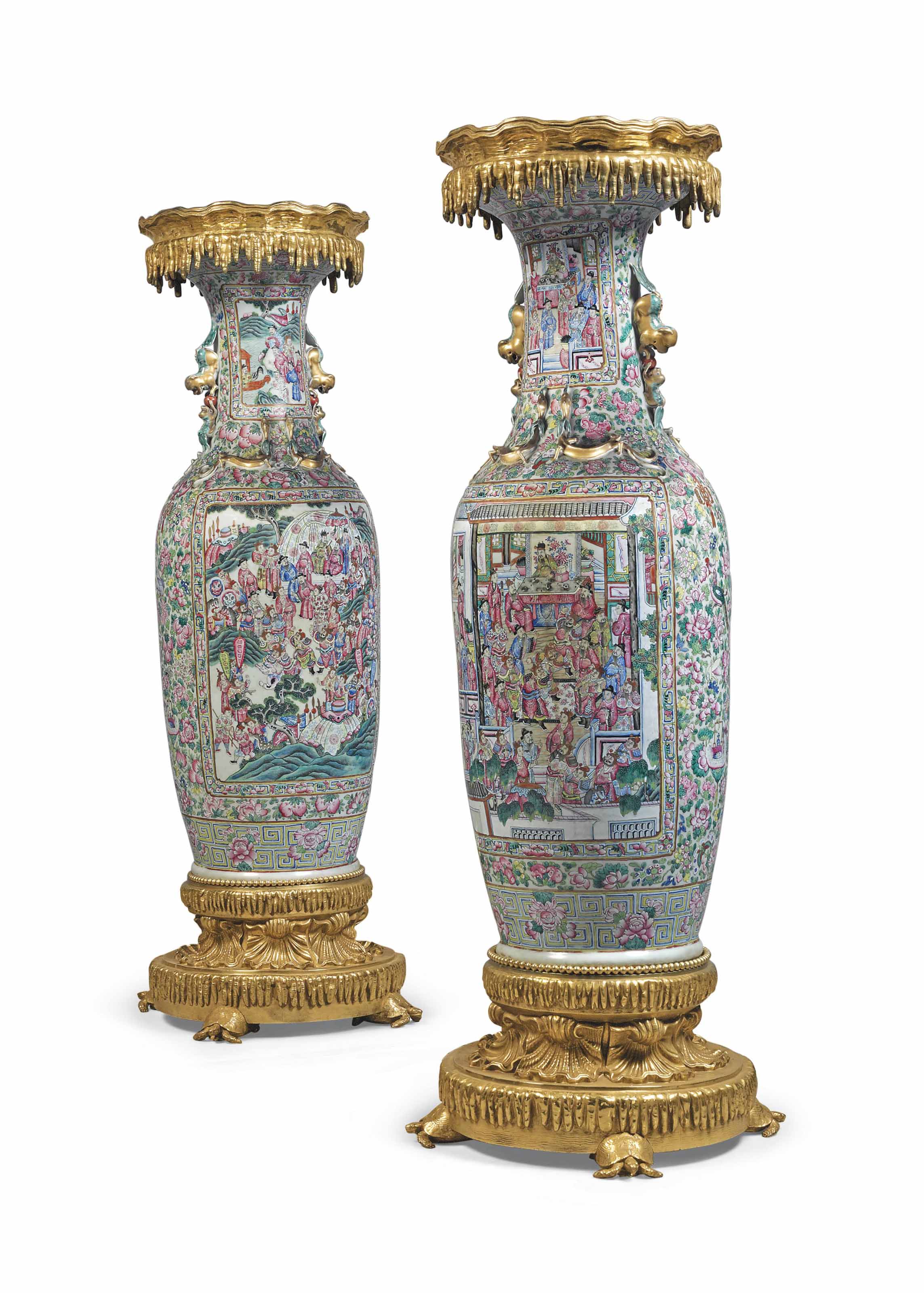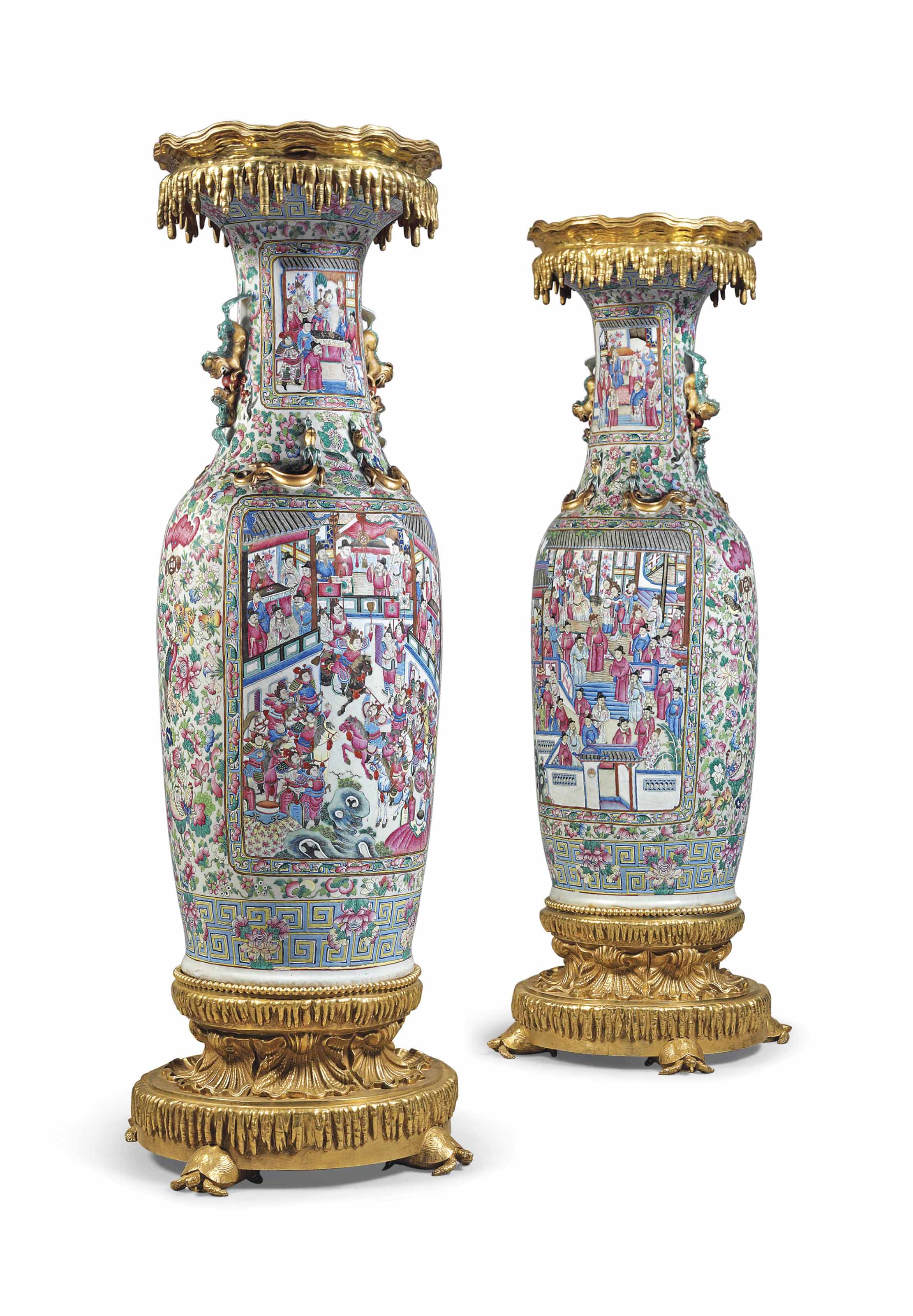 ПАРА МАССИВНЫХ КИТАЙСКИХ ФАРФОРОВЫХ ВАЗ FAMILLE ROSE Из ФРАНЦУЗСКОГО ФАРФОРА В ОПРАВЕ ORMOLU