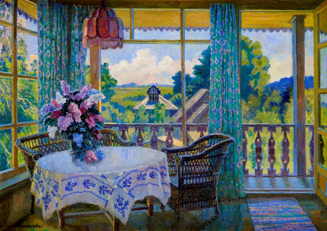Жизнерадостные картины Марии наполнены светом и солнцем, яркими красками и благоуханием цветов. Художница смело берёт чистые, сочные оттенки, чтобы передать всю красоту южного колорита.