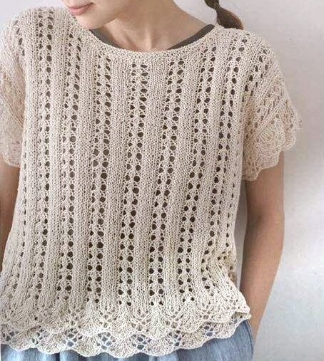 Нежнейший топ спицами, который смотрится лаконично и стильно. Сама модель топа связана по прямой, без убавок и прибавок на проймы. Рукава и низ топа украшены красивой "двойной" каймой.