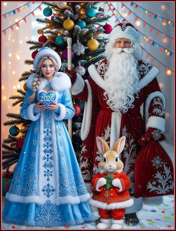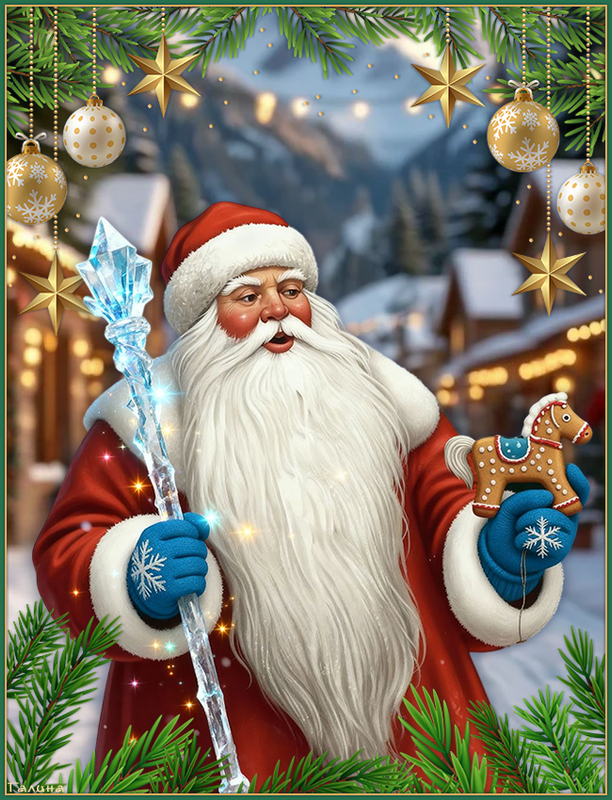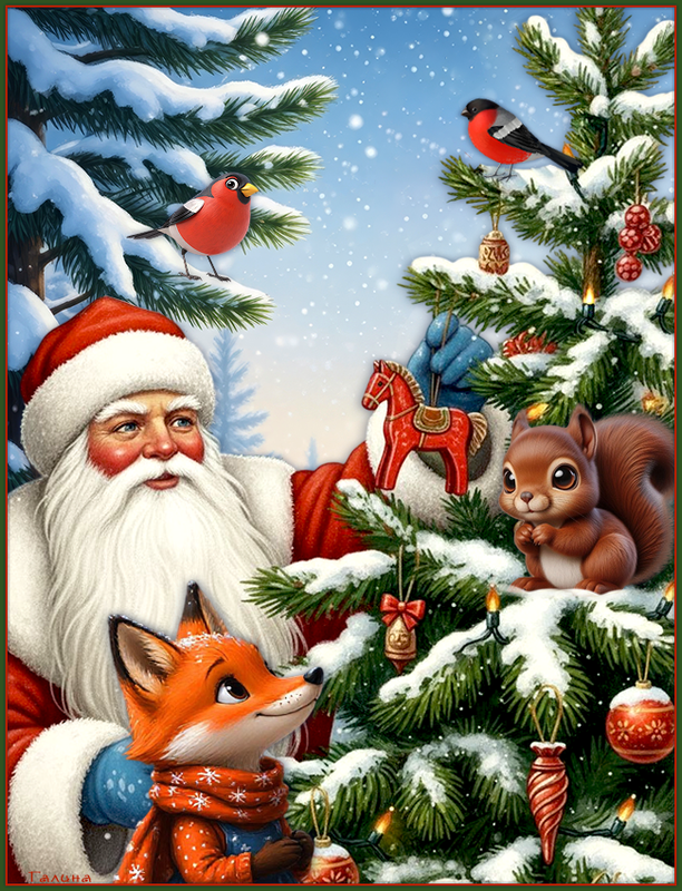 По сугробам в красной шубе, с посохом, с большим мешком Дед Мороз спешит на праздник, он заглянет в каждый дом!