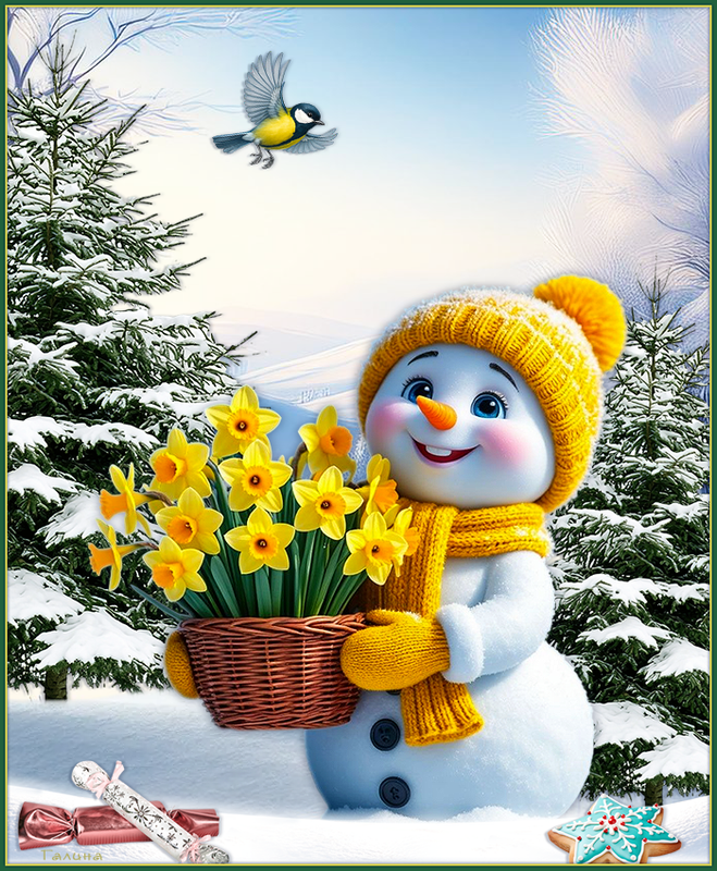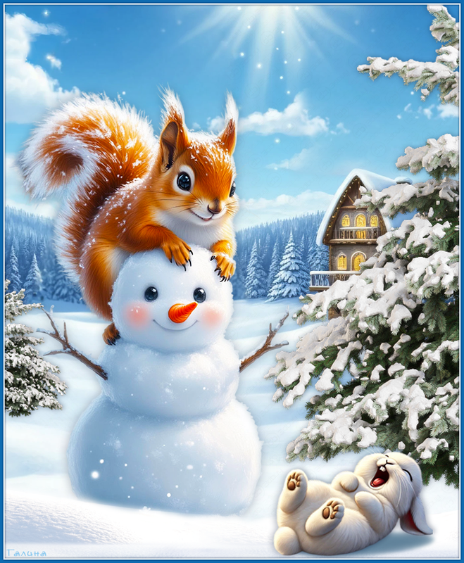 Белочка и снеговик.
