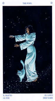 Первые шаги неопытной девушки. И не совсем первые, скорее осторожные, так как глаза у неё закрыты, и она должна довериться своим остальным органам чувств, чтобы как-то ориентироваться. Некоторым её действия покажутся безумием, однако она не обращает внимания на остальных, легче всего это сделать действительно закрыв глаза на всё и просто идти, это лишь начало пути. А это значит, что одобрения она не дождётся, ей будут говорить, что у неё ничего не получится, ей будут говорить, что она лишена рассудка, но она будто глуха. Ей всё равно, она просто идёт. Здесь идёт эпатаж, слом привычных шаблонов и размытие общепринятых границ, человек доверяет Вселенной, полностью, безусловно, он чувствует что стоит на пороге чего-то нового, интересного, какой-то новый опыт, который позволит подняться на новый уровень. Но наблюдать за этим процессом со стороны крайне умилительно, как ребёнок, не умеющий ходить, только только делающий свои первые шаги. А что его подталкивает на эти первые шажочки? Конечно, улыбка мамы) То есть карта указывает на Действия от Сердца, порой на инфантильность, наивность, основывающуюся на мечтательности и витании в облаках. Человек определённо творческий, ищущий, но который умеет разговаривать со Вселенной, а если нет, то она всё равно его слышит и заботится о нём, ведь он ещё так беспомощен) Карта символизирует Духовный взлёт, а также напоминание о наших ценностях, жизнь в одном моменте, самом прекрасном моменте) Мы начинаем наш путь, расширяем сознание и берём всё, что даёт нам Вселенная , доверяясь ей. Но на данном этапе ещё ничего не понятно, что-то новое, неизведанное врывается в жизнь, но что? Пока в голове одна неразбериха. Традиционно эта карта учеников, постигающих новое искусство, мастерство. Они неопытны, у них нет никаких навыков, у них ,как правило, ничего не получается. И кажется, что конца не видно, многие сворачивают с этого пути, бросив дело, так и не начав, испугавшись, а возможно, и поддавшись иллюзиям и голосу, очень строгому как критик,говорившему нам "что у нас ничего не получится", но не стоит сдаваться, на данном этапе просто необходима поддержка, помощь, одобрение, вера в себя и мотивация. Здесь все эти компоненты символично изображены в виде Кота, это помощь данная Вселенной для реализации всех желаний. Думаю, что в конечном итоге всё закончится благоприятно, главное победить это ощущение дискомфорта, неуверенности, ощущения громадного количества информации и хаоса в голове, должно пройти время. Главное не бросать выбранное дело, это такое первое маленькое испытание. Испытание сменяется неожиданностями, новыми событиями, знакомствами, открытиями и сюрпризами, опытами, озарениями. После этой карты невозможно остаться прежним) Девушка нерешительна, ей нужен какой-то толчок извне, чтобы сделать шаг, она не знает как ей правильно поступить, однако маленькими маленькими шажочками, осматриваясь,анализируя и прогнозируя ситуацию, человек сможет допустить меньше ошибок, да и то, любая ошибка во благо, поэтому не стоит ограничивать себя в чём-то, у вас есть Свобода-так распоряжайтесь ей) По этой карте часто идут какие-то переменчивые настроения, когда мы поддаёмся нашим внутренним импульсам. Человек безумен, он действует на нервы, делает что-нибудь во вред, чтобы доказать свою свободу, иногда это случается от затуман