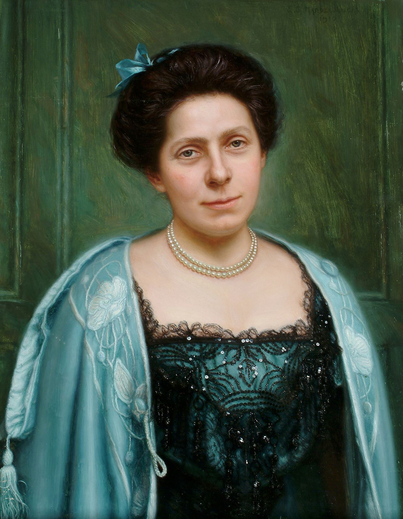 Portrait of a Girl in a Blue Dress and Pearl Necklace