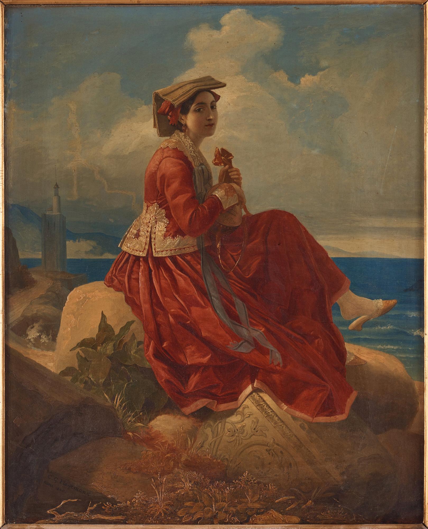 **Портрет дамы в карнавальном костюме с маской в руках**