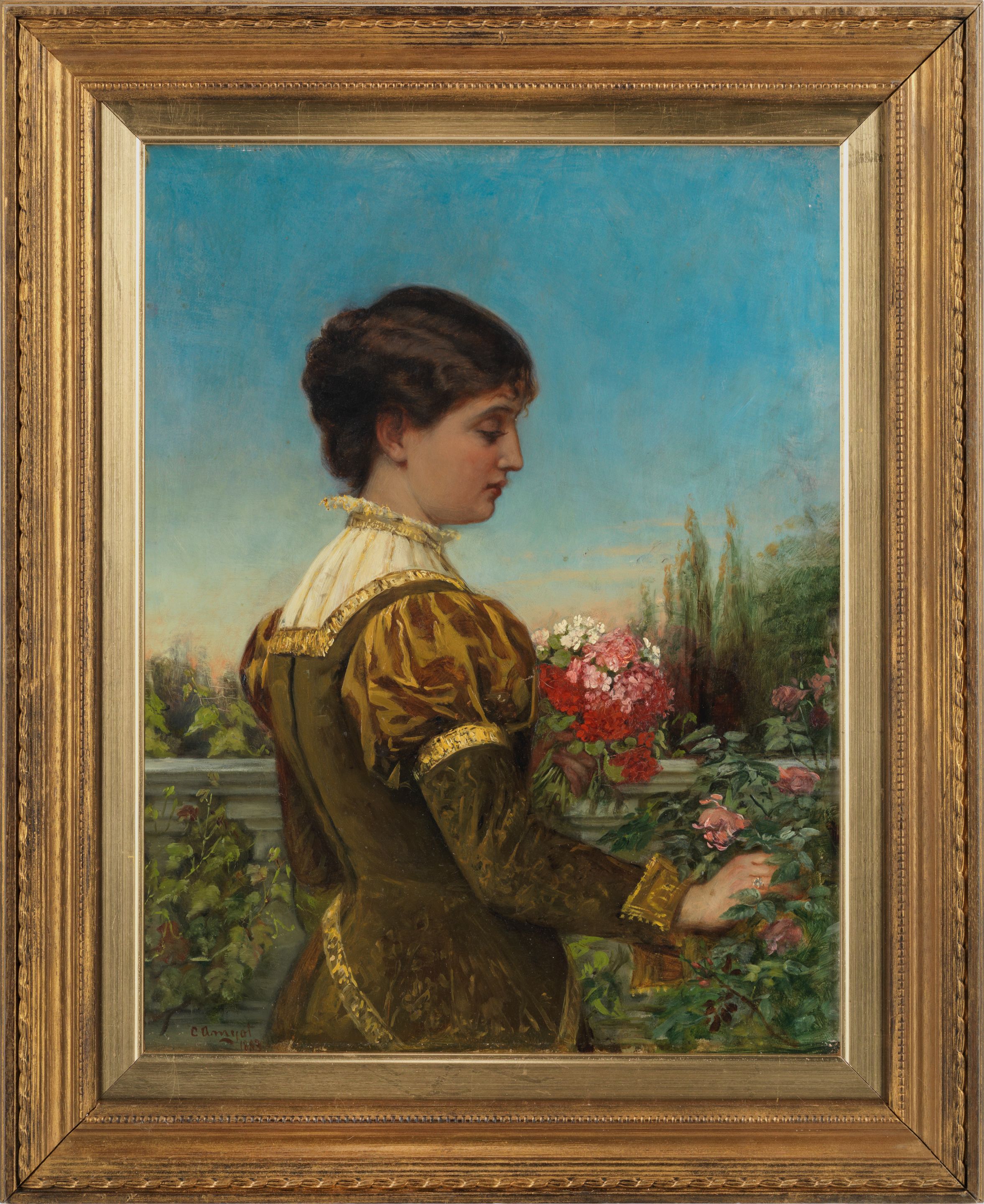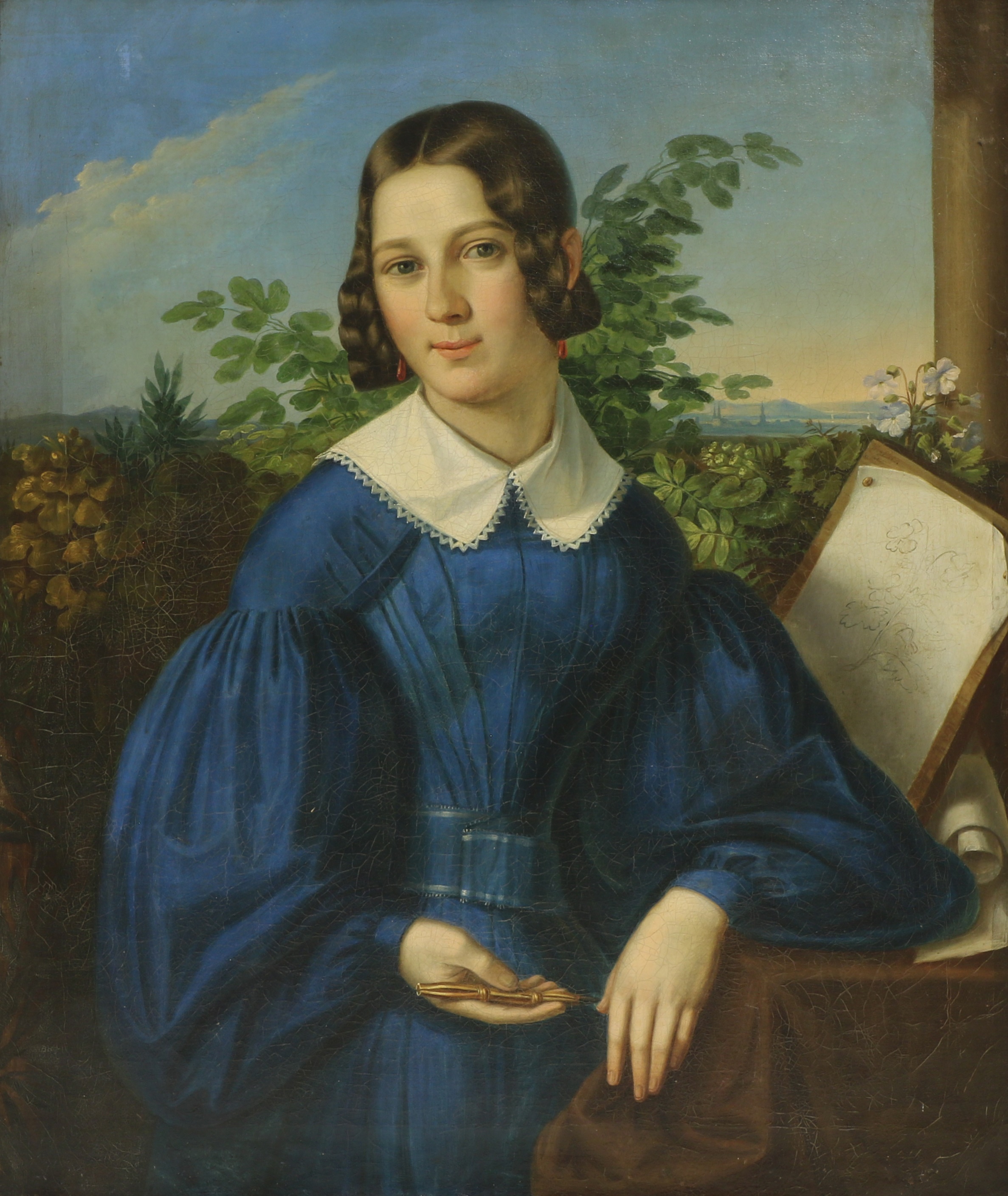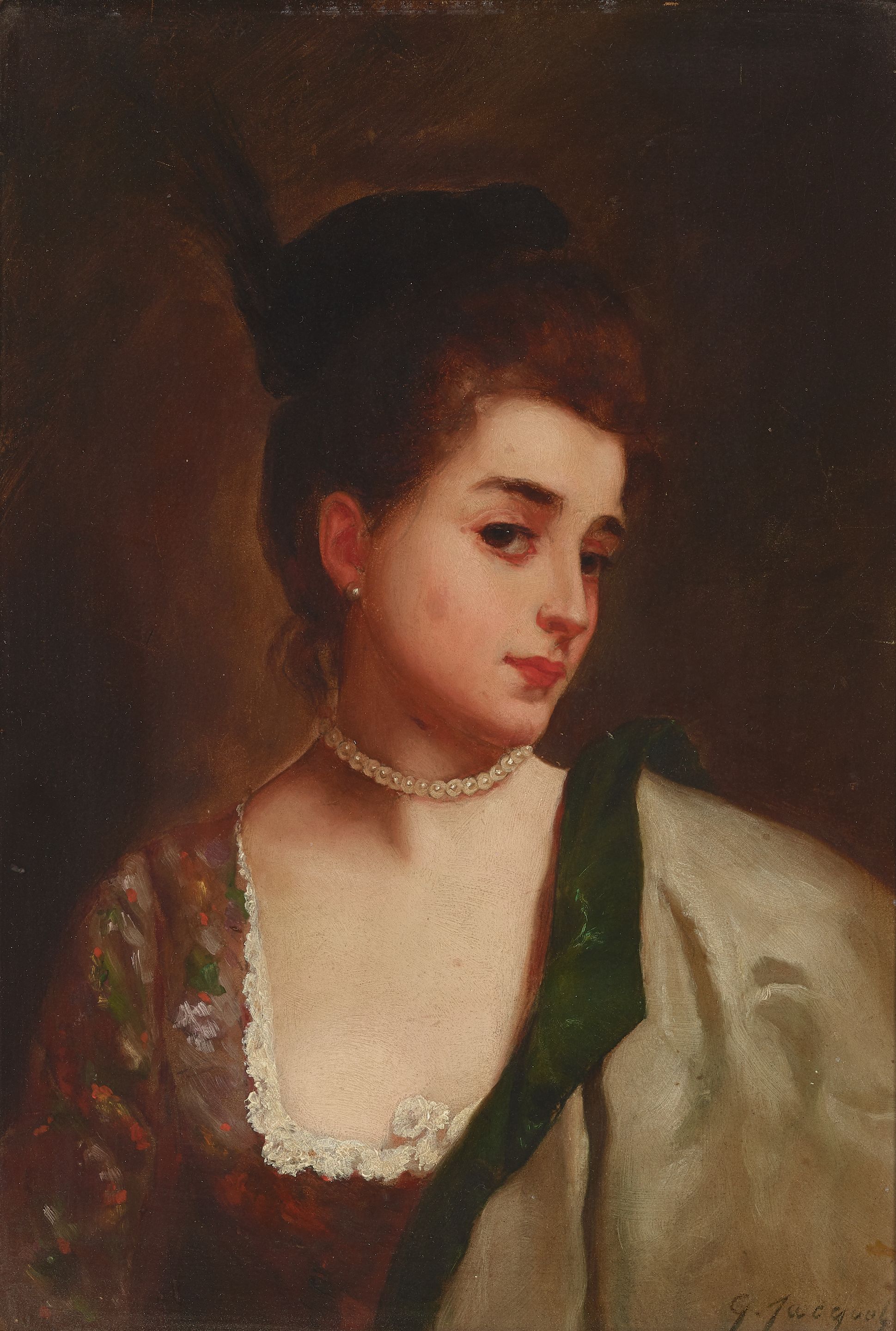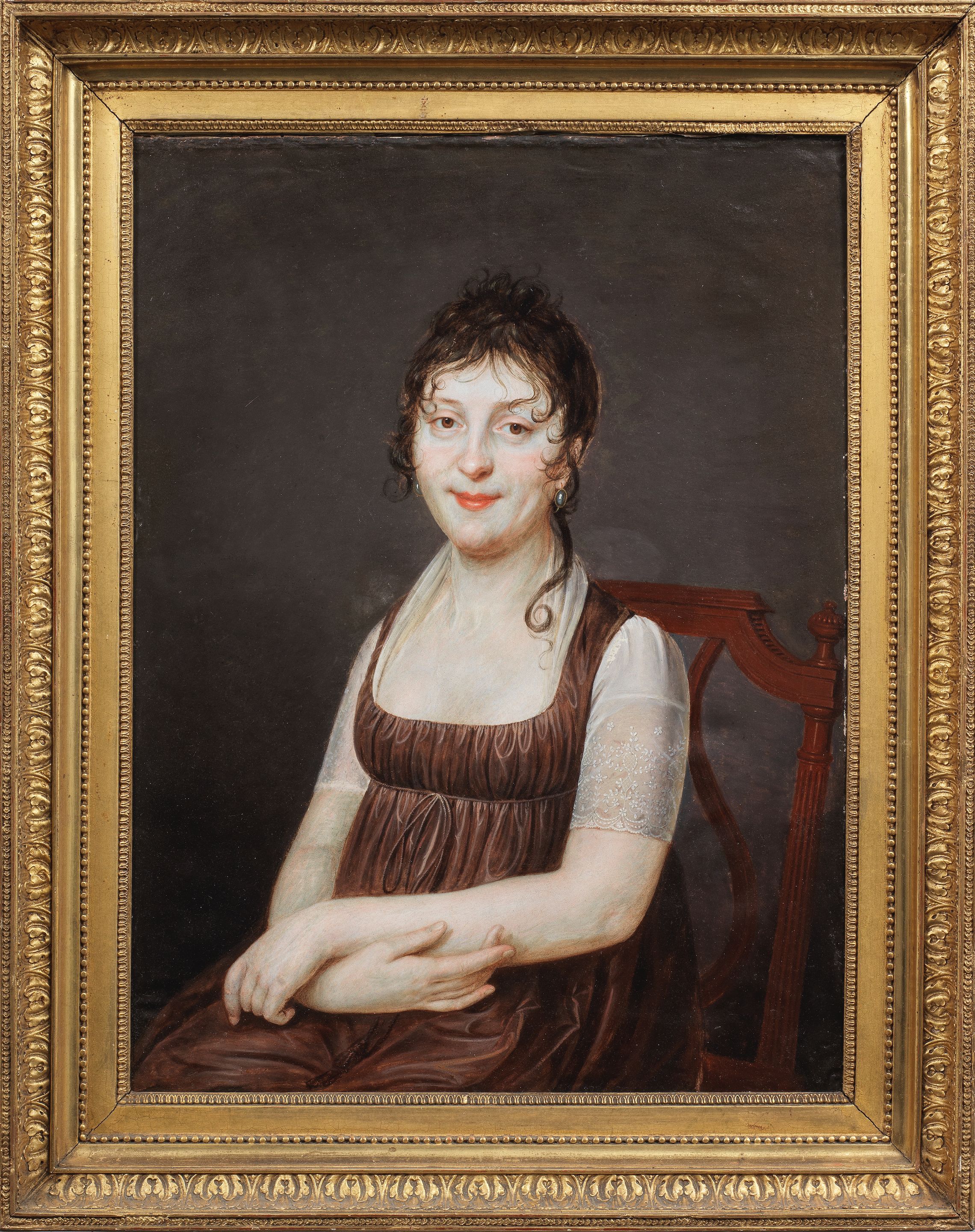 Portrait of a lady, three-quarter-length, in a golden embroidered dress with a white lace