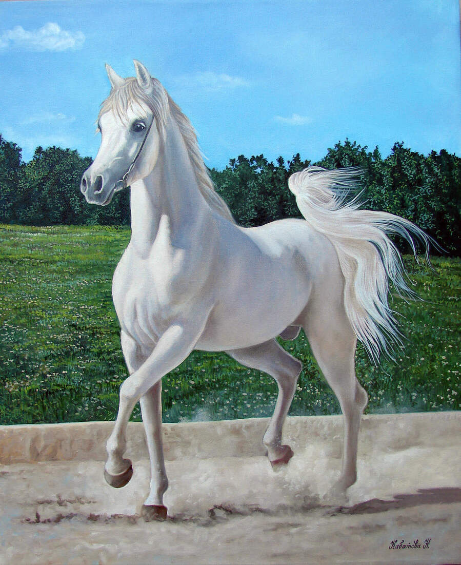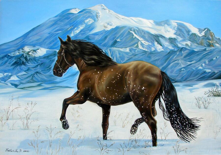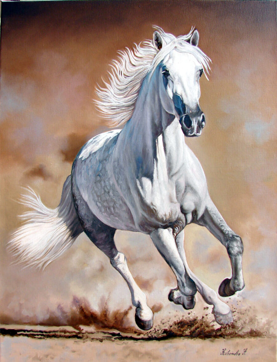 Шелковистая белая грива, Гордой поступи чёткий узор,