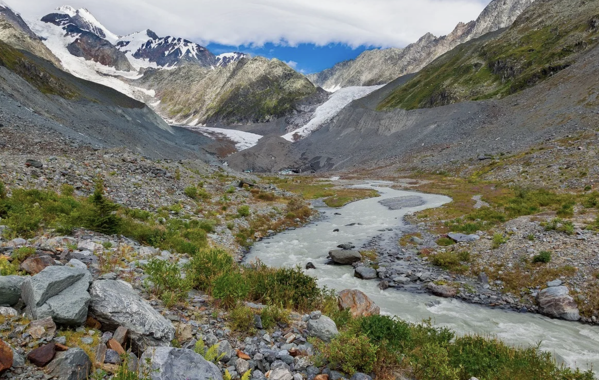 Катунь берет начало на склонах знаменитой горы Белухи - самой высокой горы Сибири (4509 метров).