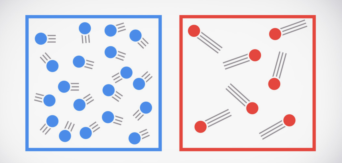 Когда молекулы неактивны – вещество холодное. Когда они разгоняются – температура растет.