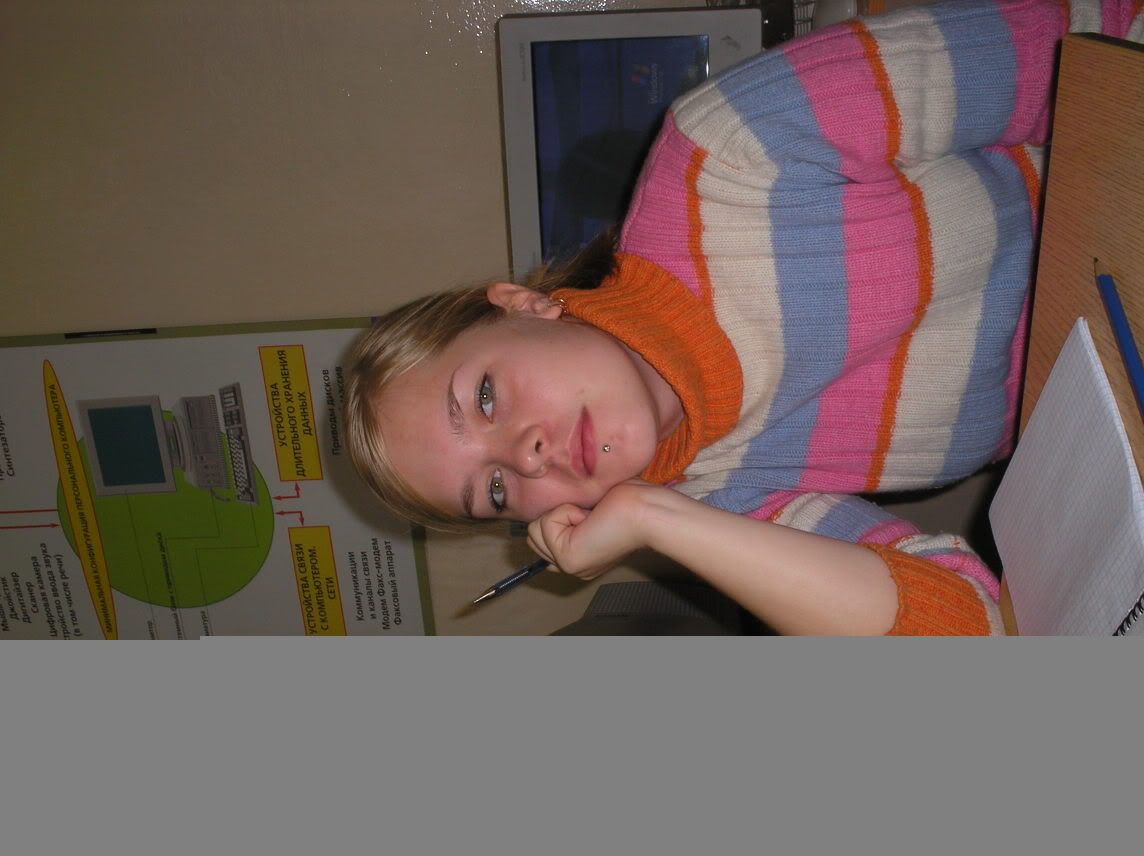 С пэрэнтами сегодня поссорилась, да и не один раз! Блин, заколебали! Я нисколько не была против того, чтобы сегодня копать картошку. И все бы нормально, если бы они меня не подкалывали насчет моей болезни и хриплого голоса! Это реально доставало и я все время думала, когда ж мы поедем домой. С утра мне было очень плохо! Я не выспалась, хотя и легла спать в 21:00, после турслета очень устала, все-таки целый день на воздухе! Еще мышцы болят и пару синяков откуда-то заработала :). В общем с утра у меня не было никакого настроения, слабость. И я даже заплакала от того, что было тяжело. Заплакала по-тихому, чтобы никто не видел и не слышал. Почему-то стало обидно и жалко саму себя. Хотя НЕНАВИЖУ жалеть саму себя и вообще когда жалеют!!!! НЕНАВИЖУ!!!!