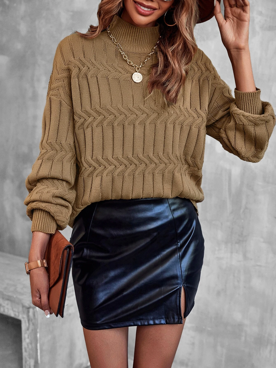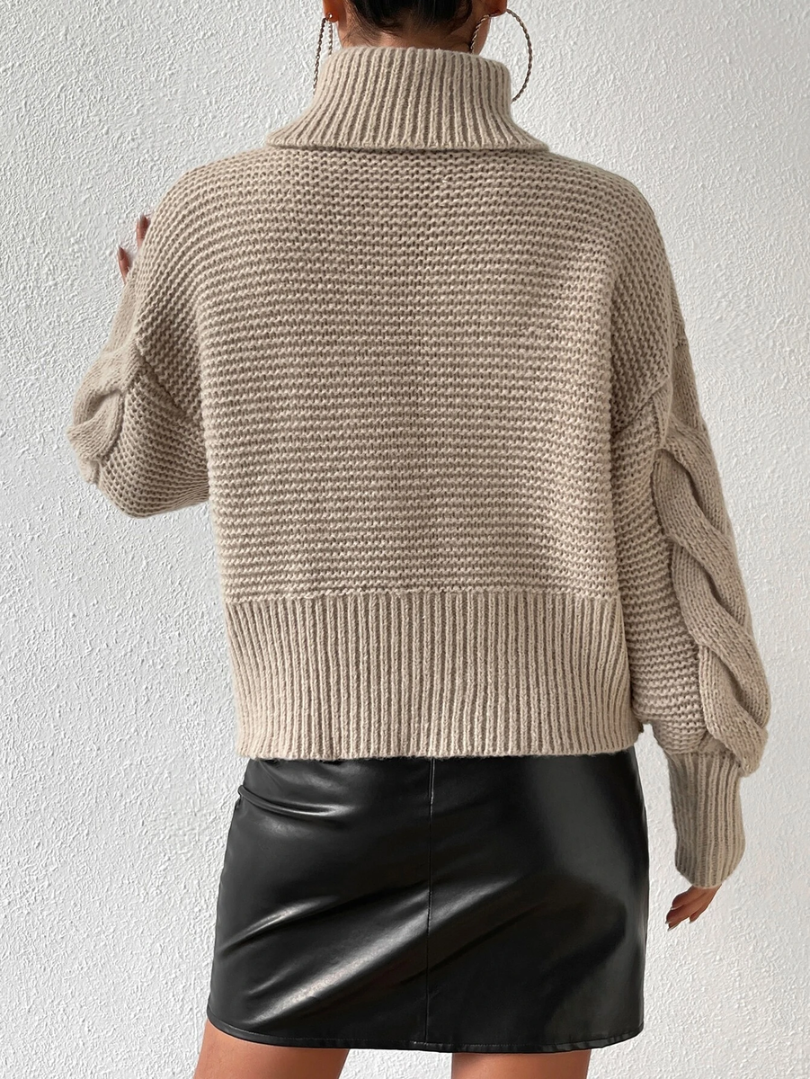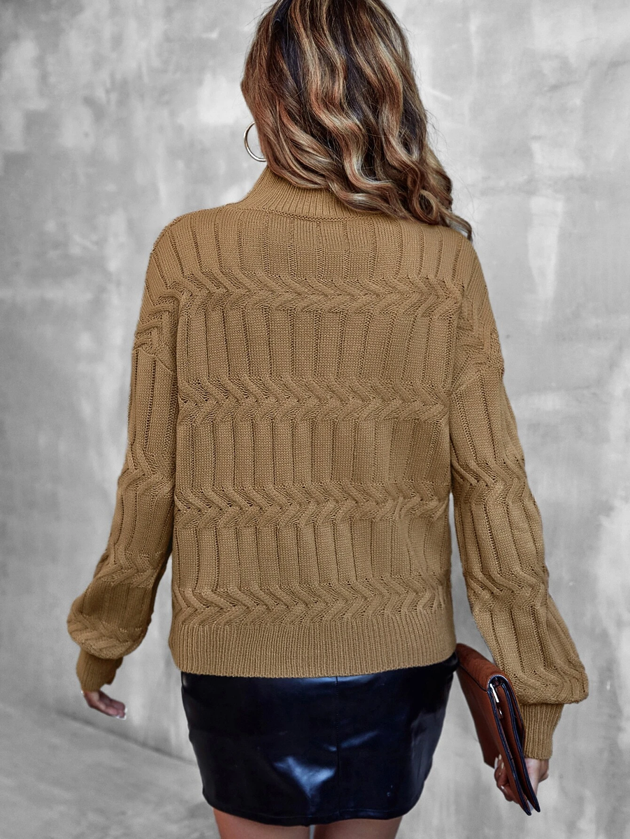 Девятый свитер мне понравился своими объемными узорами. Он теплый, с высоким воротником-гольф (связан резинкой 1х1), но немного укороченный (как сейчас модно).